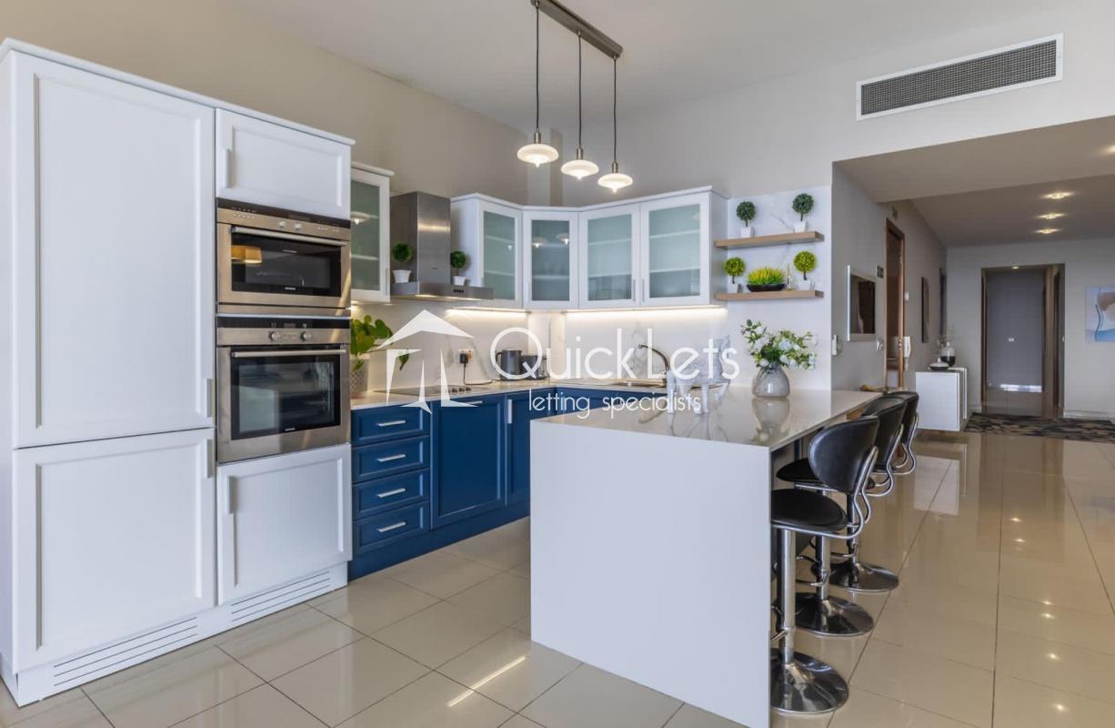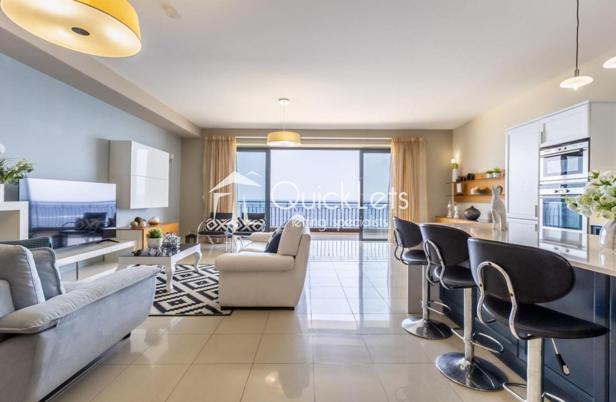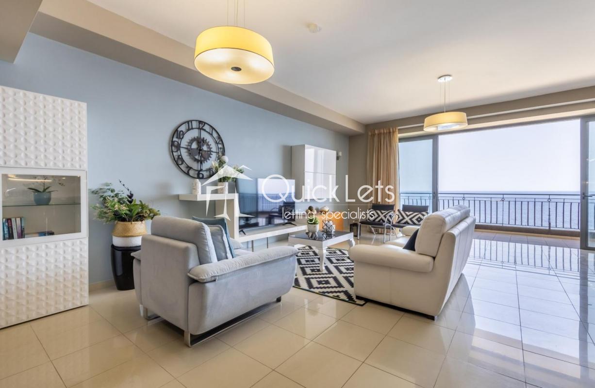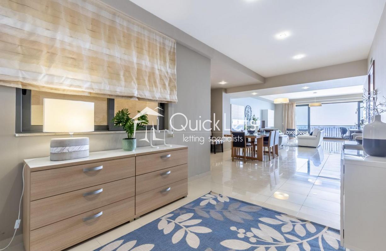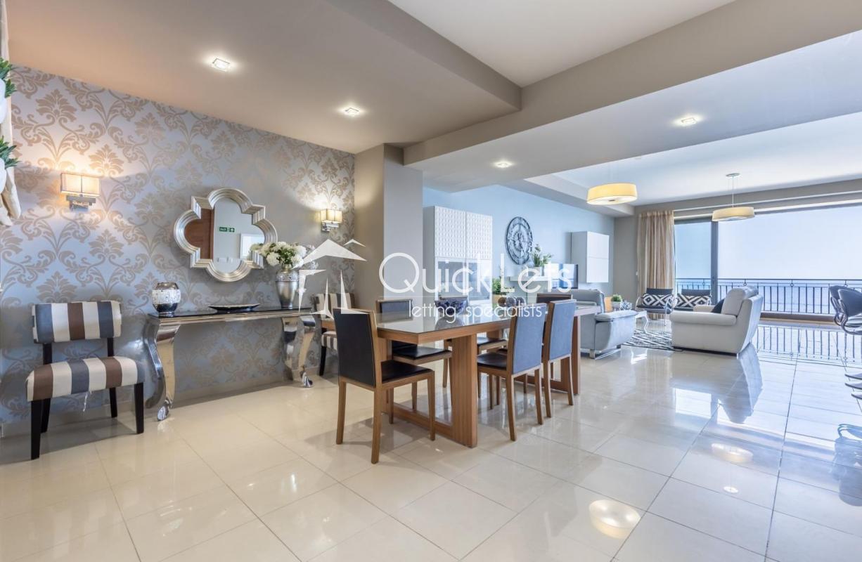 This beautiful seafront apartment is located in the heart of Sliema. The property has been finished to a high modern standard and is fully equipped with all necessary day-to-day features and appliances. Property layout comprises a large open plan kitchen, living and dining area, followed by the main bathroom, laundry room, and three double bedrooms (main with en-suite) and a second bedroom with a good-sized back terrace.