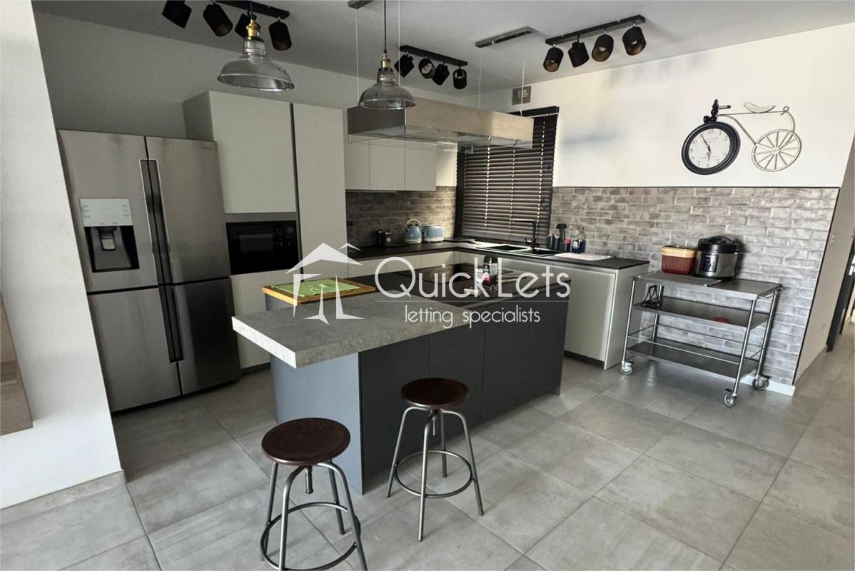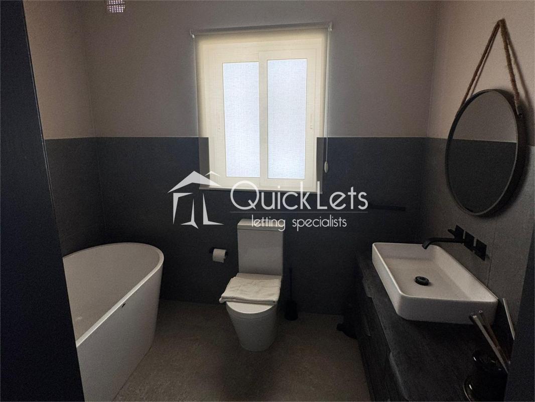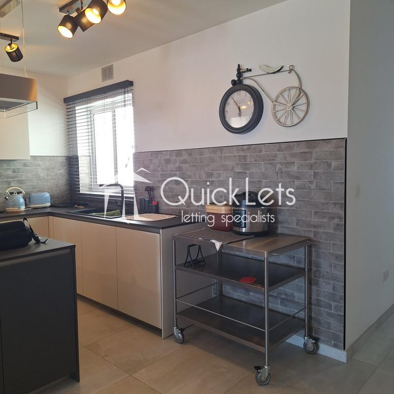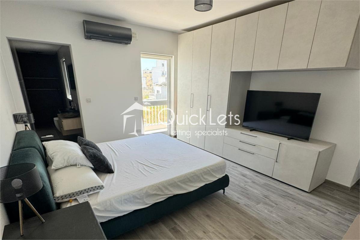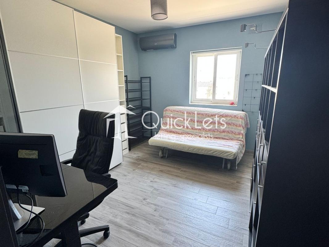 Spacious three-bedroom apartment in a quiet area, just minutes from daily amenities, third bedroom set up as a study with sofa bed. The main bedroom has an ensuite, and there is also a guest bathroom. It has a Front terrace and back balcony, equipped with modern appliances – washing machine, tumble dryer, dishwasher, etc. Fully air-conditioned throughout. Ideal for couples, families, or professionals.