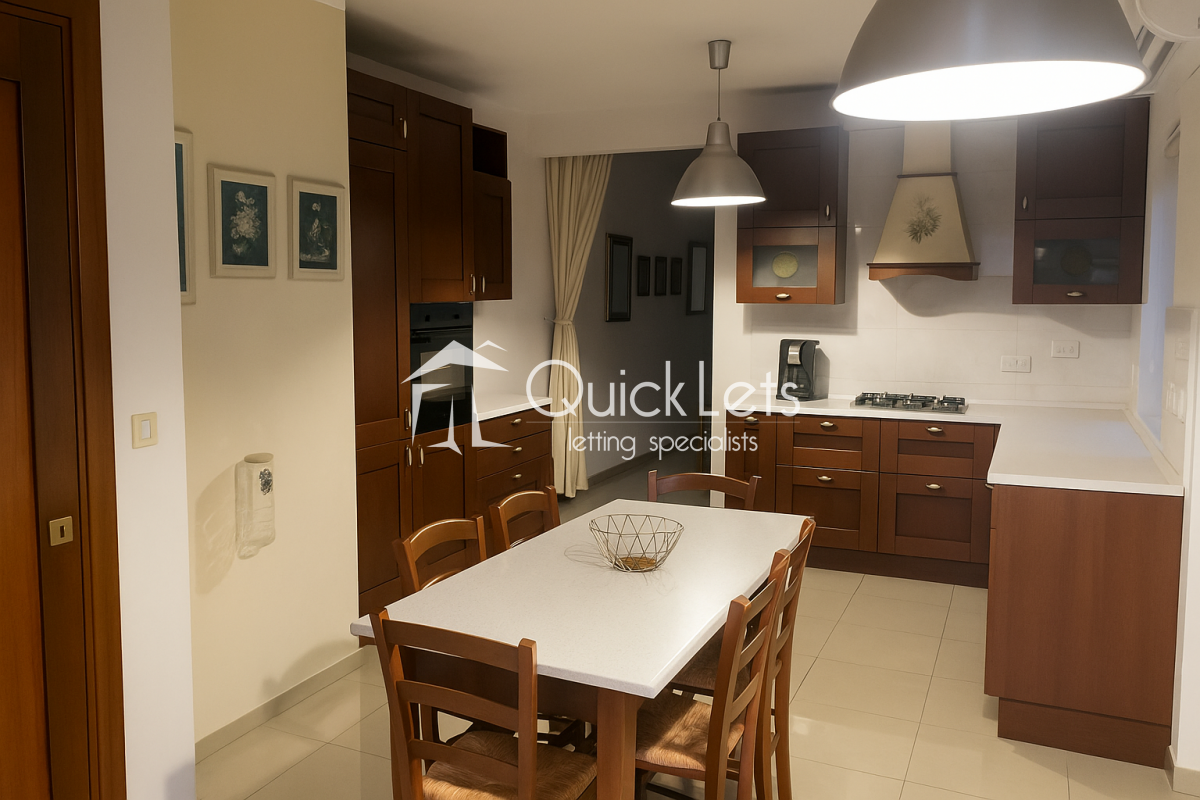 SANTA VENERA - Modern penthouse with a three bedrooms and two bathrooms having a roof terrace and locatate in the Central area close to all aminities and bus transport. The property is fully furnished and equpped as well Airconditioned with a open plan kitchen/dining and living area as a brith spaces area. It`s convinience for family or people who want to share the apartment.