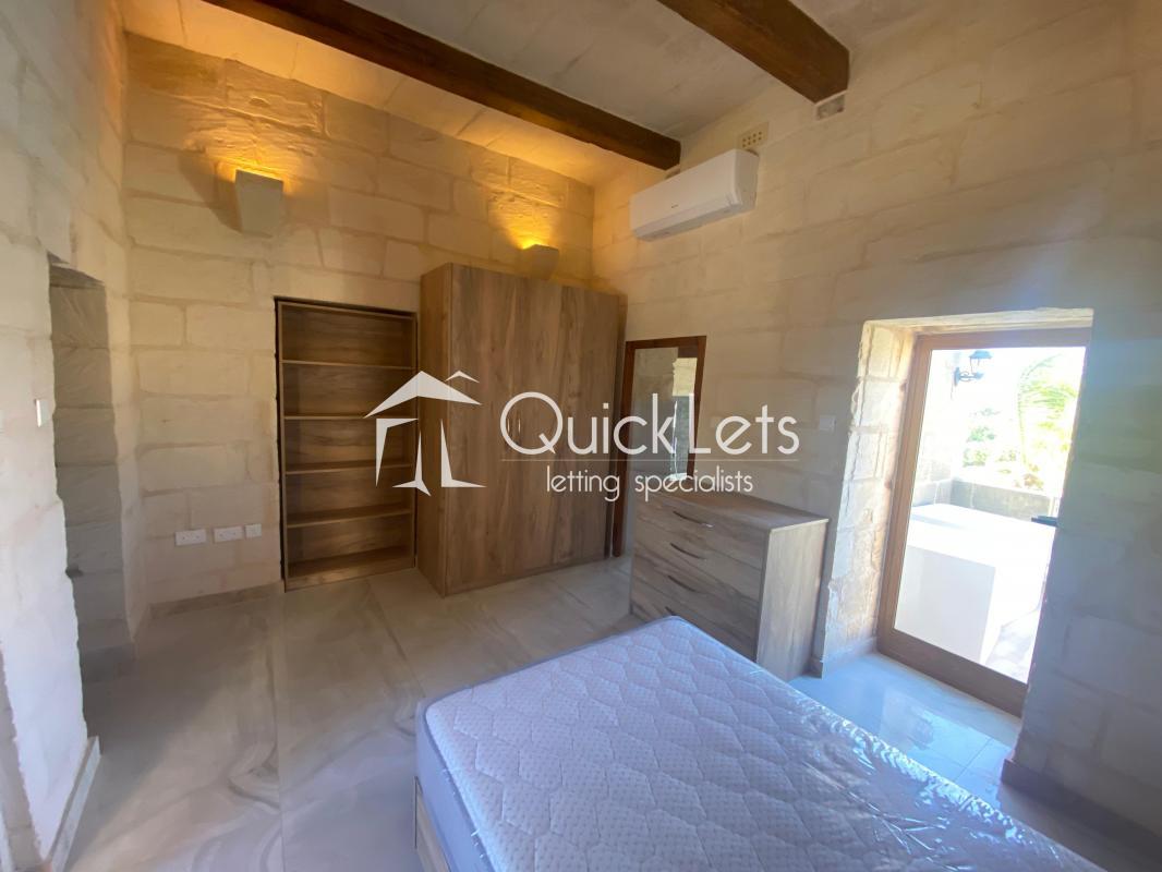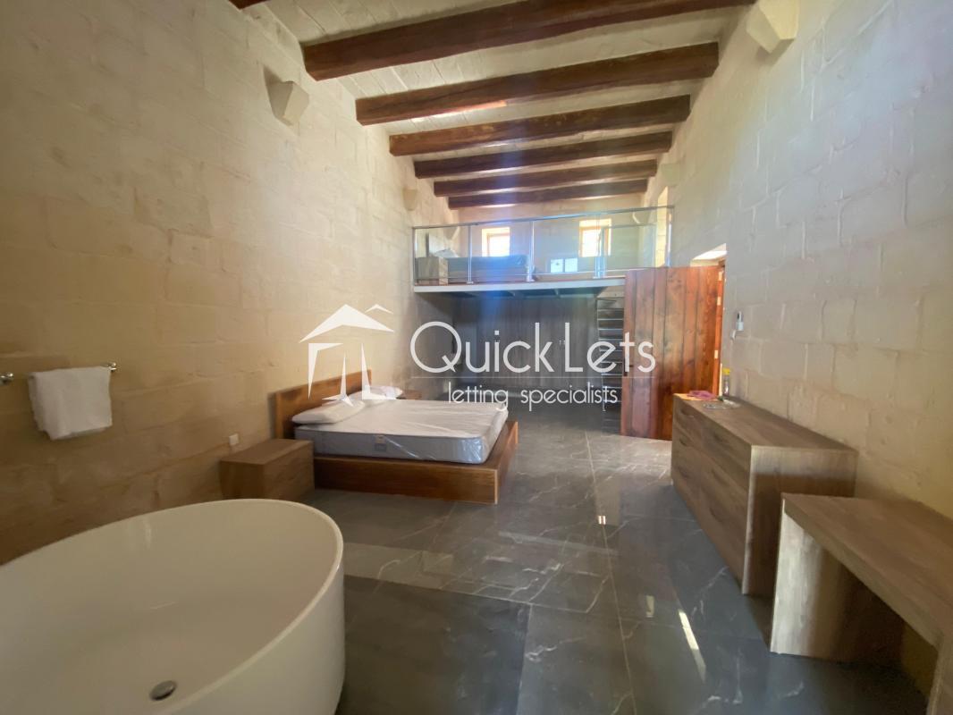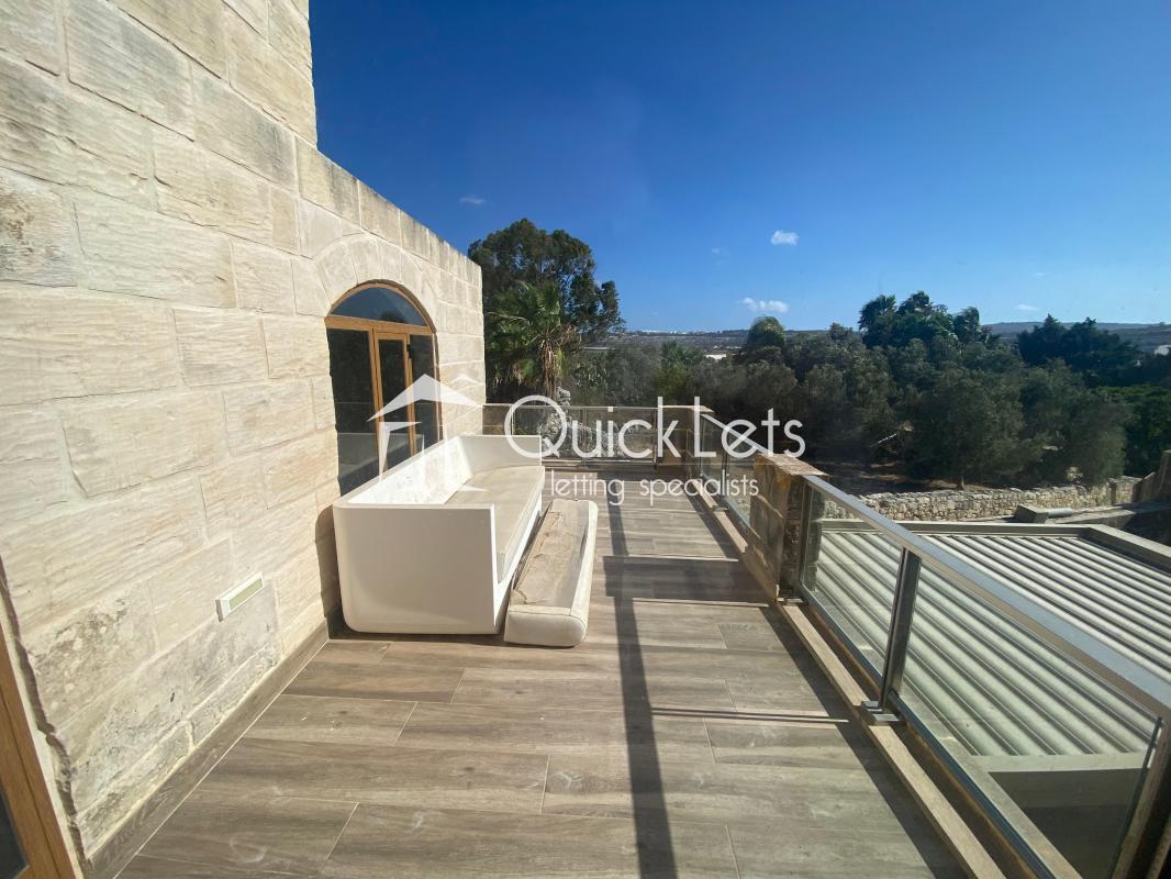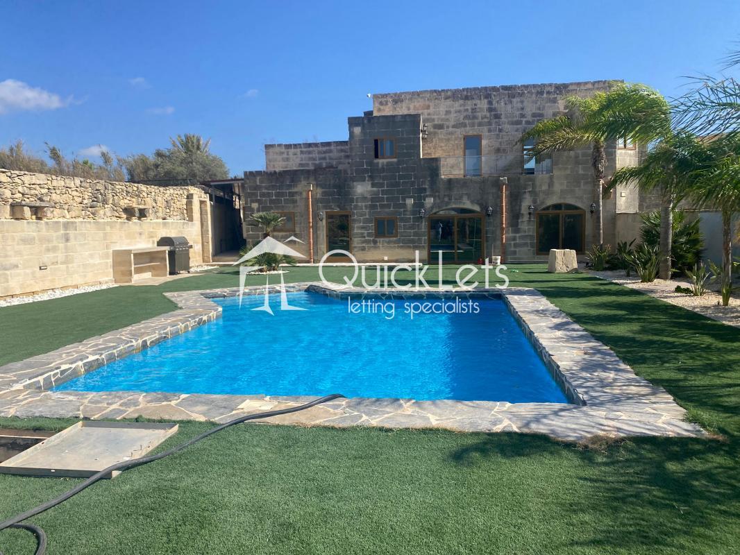 BURMARRAD - A Four-Bedroom farmhouse located in a quiet area of the village. The layout of the house consists of an open plan, fully furnished and equipped kitchen/Dining/Jacuzzi/Swimming pool. All the bedrooms have an en-suite bathroom. There is a use of the roof and balcony. A/C is in the open plan area. This farmhouse commonly features a deep water well.