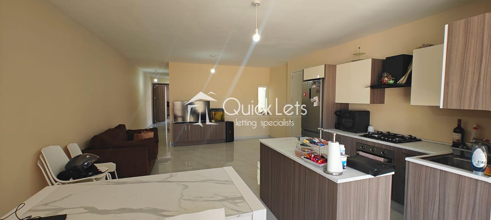 QALA, Gozo – Three-bedroom apartment, one with an ensuite and a main bathroom. One of the bedrooms could be used as a study or a bedroom. Open plan kitchen, living, and dining, fully equipped. Large front balcony. Air-conditioned. Served with lift. Not pet-friendly.