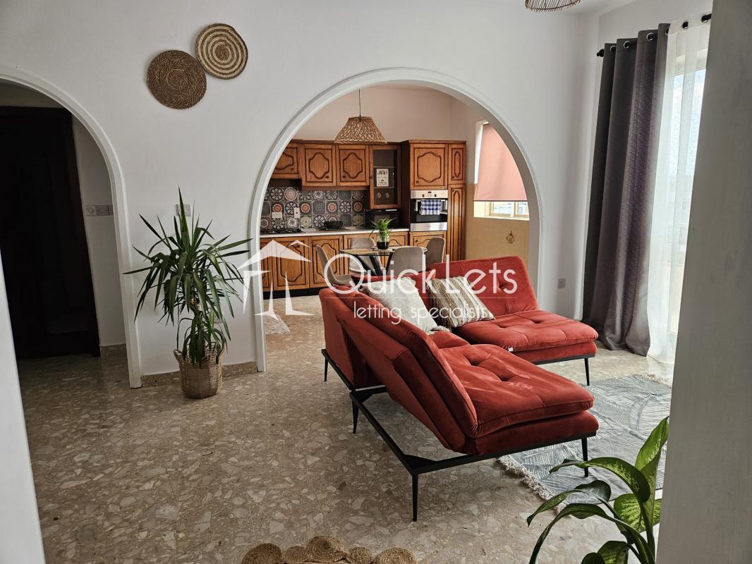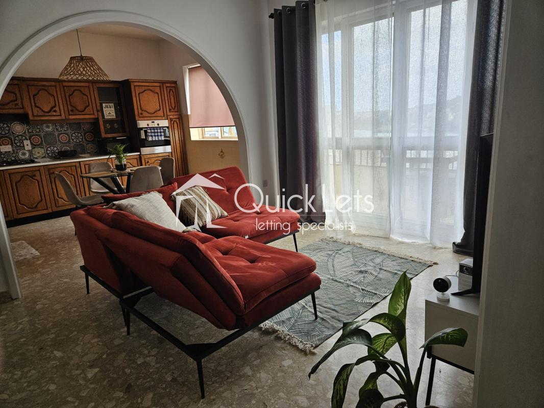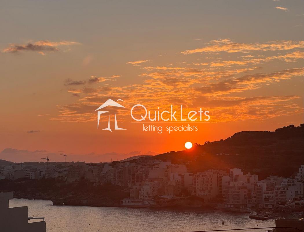 XEMXIJA - A nicely furnished two bedroom apartment close to the sea, bus stops and shops. The property consists of an open plan kitchen/living/dining, two bedrooms, one bathroom, a walk-in wardrobe, a spacious front balcony with amazing sea and country views equipped with outdoor furniture and use of roof. The main bedroom is equipped with a double bed. The second bedroom is equipped with a single bed. The property is fully equipped and fully airconditioned. Ready to move into. Worth viewing.