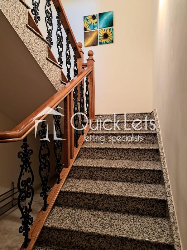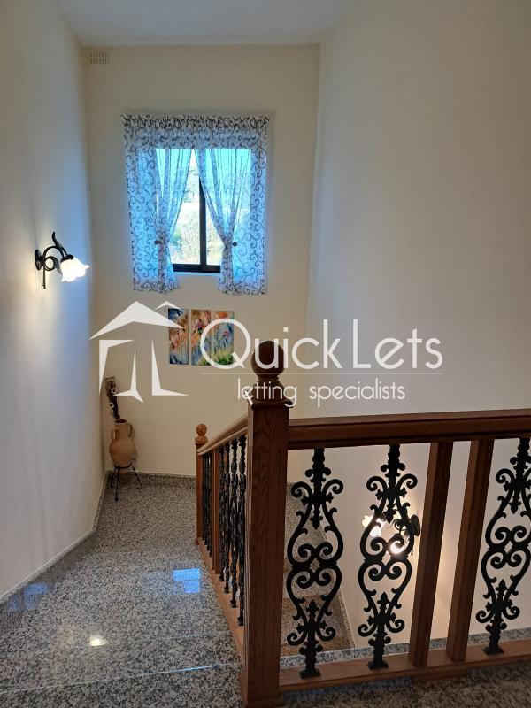 ZABBAR - A four-bedroom solitary maisonette (house). At the entrance, one can find the stairs taking you to the first floor of the maisonette. On the first floor, there is a bedroom with a double bed and a front balcony, a spare bedroom with two single beds, the bathroom with a shower, the box room, and the kitchen/dining/sitting area with a back balcony. On the second floor, one can find the two spare bedrooms with a single bed each, a bathroom with a bathtub, the utility room with a washing machine, the balcony, and a front, good-sized terrace. The maisonette comes equipped for immediate occupancy with all day-to-day essentials, including A/Cs, curtains/blinds. The kitchen is fully stocked with a fridge/freezer, oven, hob, microwave, and dishwasher, along with all necessary utensils.