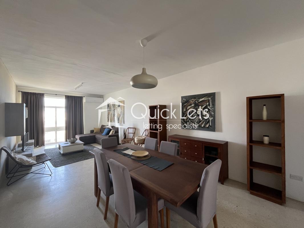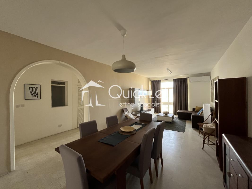 A well-kept and spacious apartment in a quiet area of St. Julian’s. Consisting of two double bedrooms, one en-suite bathroom, and a main bathroom in the hallway, along with a utility room. There is a large open-plan living/dining room and a separate kitchen, with both front and back balconies.