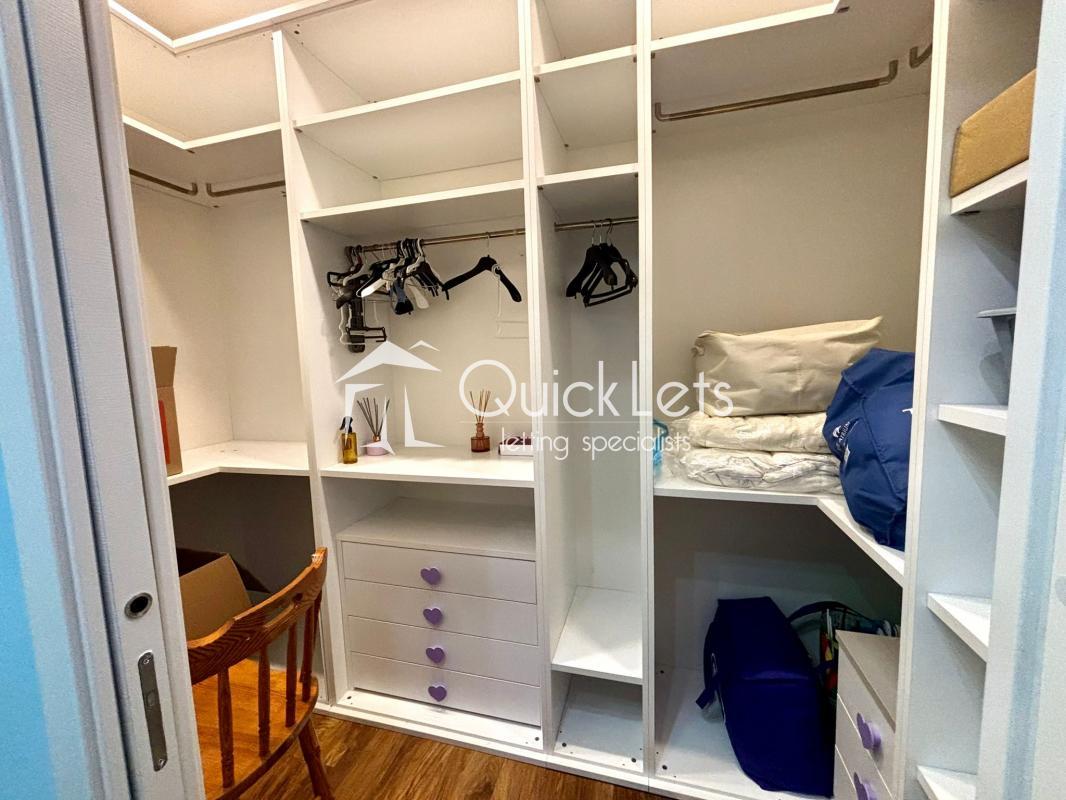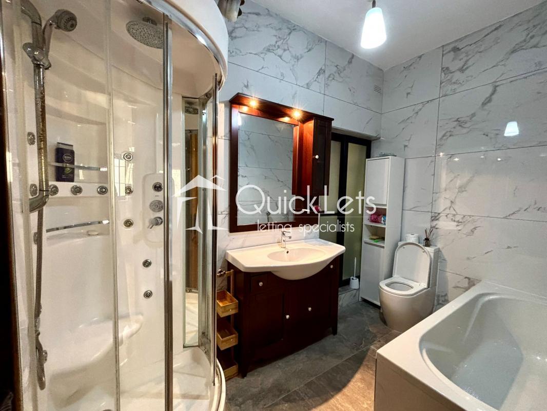 The property features a bright open-plan kitchen, living, and dining area fitted with ultra-modern appliances, including a dishwasher. The main bedroom comes with an en-suite bathroom, while the spare bedroom includes a shower and a walk-in wardrobe. A small office provides a quiet workspace but can easily be converted into a third bedroom if needed.