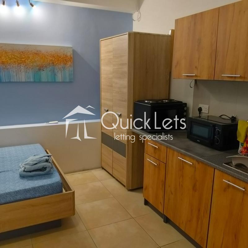 ST JULIAN'S - Small and fully equipped studio apartment located in the heart of St Julian's, the studio apartment consists of a fully equipped kitchen, double bedroom, main bathroom, utility room with washing machine and tumble dryer. The room has an AC.