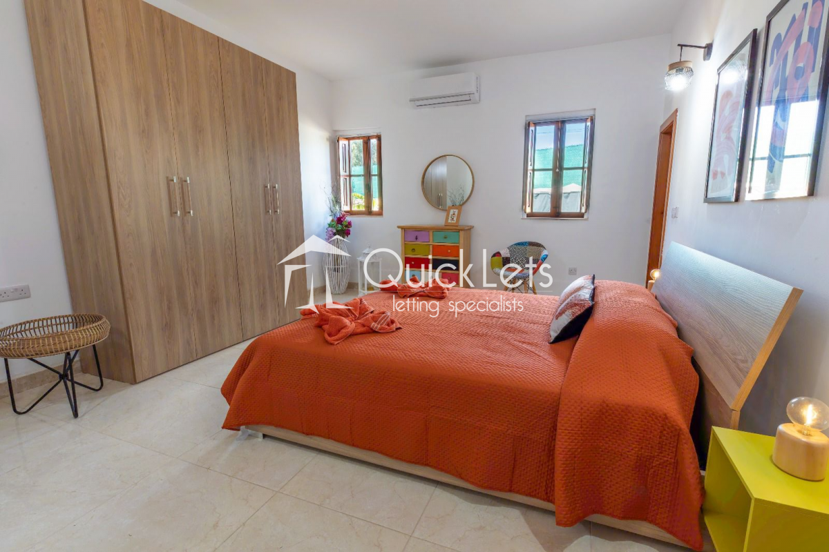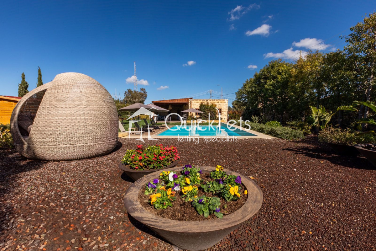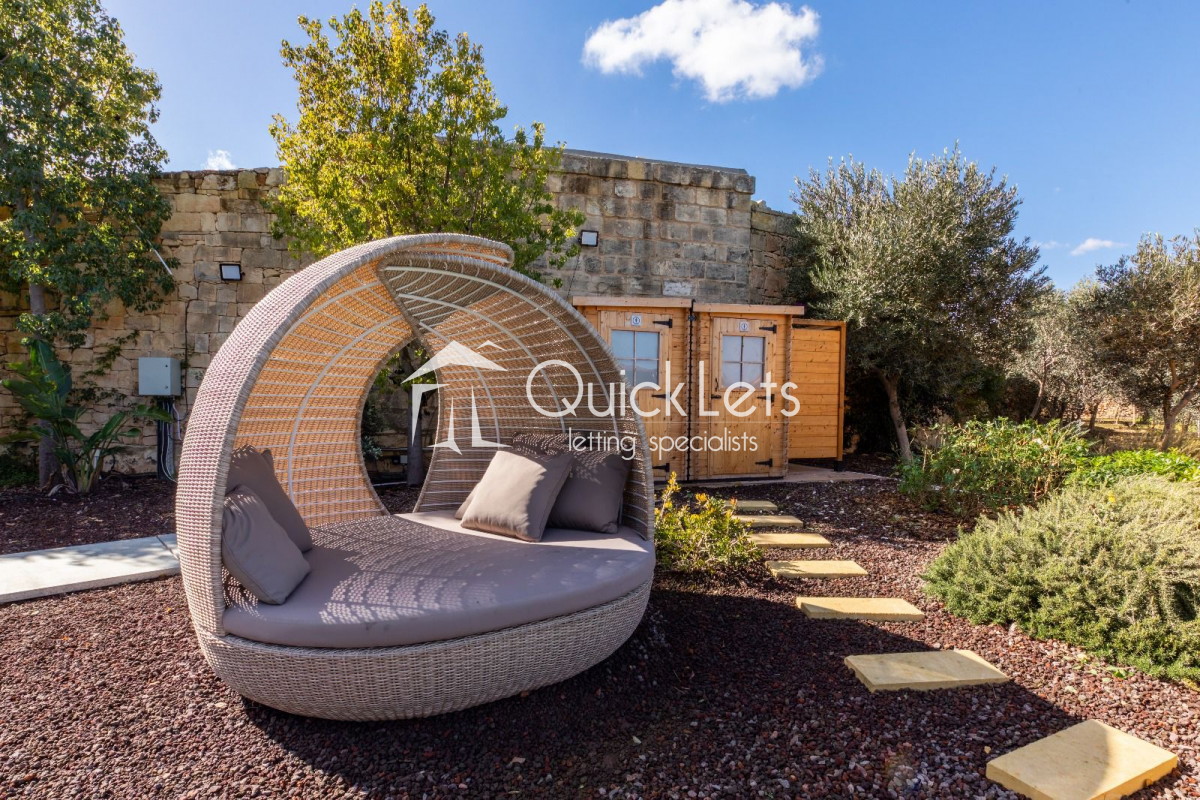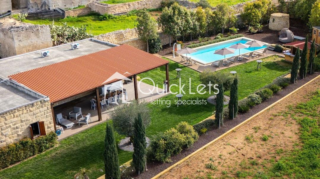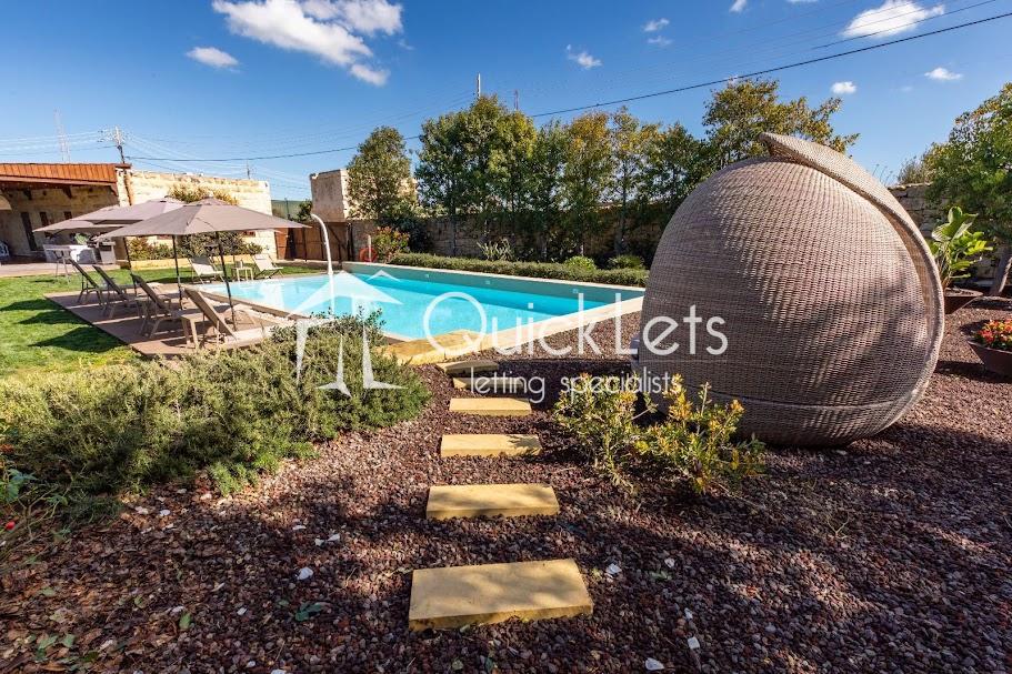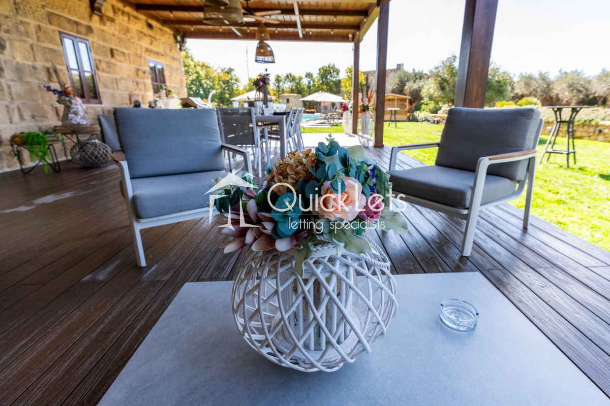 The exterior also boasts a large private swimming pool, a fully equipped bar, and outdoor showers, making this farmhouse a rare and exclusive rental opportunity in the Maltese countryside.