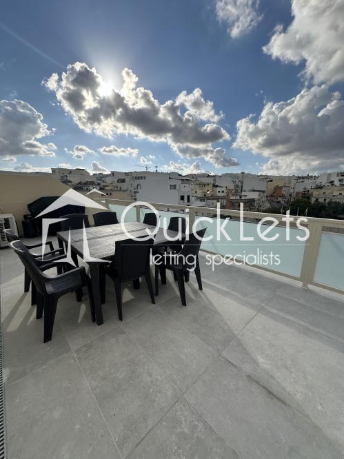 This brand new (October 2025), modern, and spacious penthouse in the heart of Swieqi enjoys unobstructed views and abundant natural light. The open-plan layout features a stylish kitchen, dining, and living area that flows seamlessly onto a large terrace furnished with outdoor furniture, BBQ, and sun beds, ideal for entertaining or relaxing.