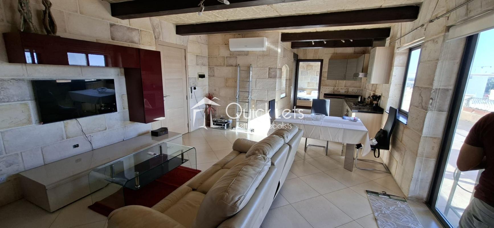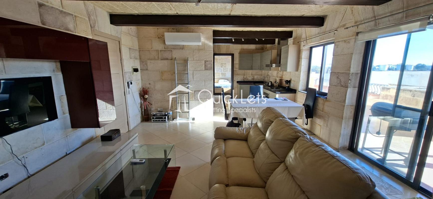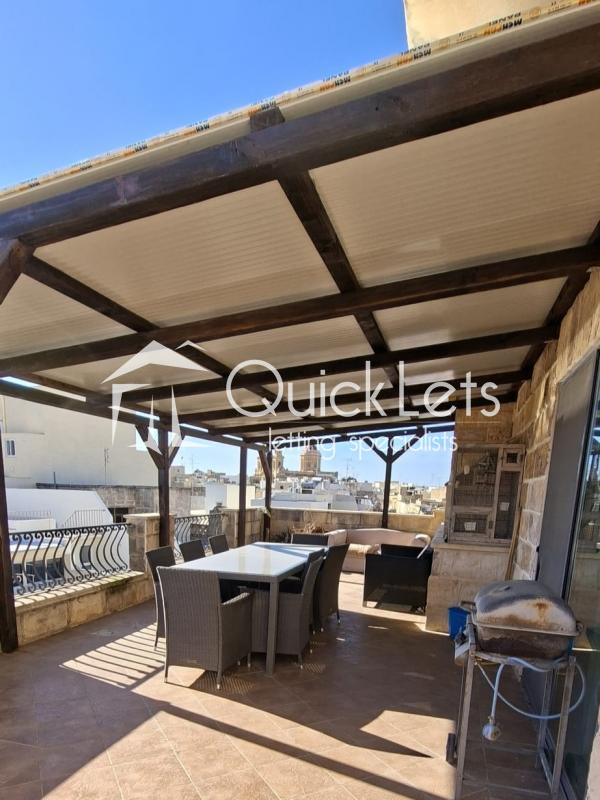 LUQA - On the market is this characteristic penthouse featuring Maltese stone and a wide frontage. The property comprises a good-sized K/L/D area which leads to a huge terrace, two double bedrooms, two bathrooms (one of which is an ensuite shower), a back balcony, and a washroom equipped with both a washing machine and a dryer.