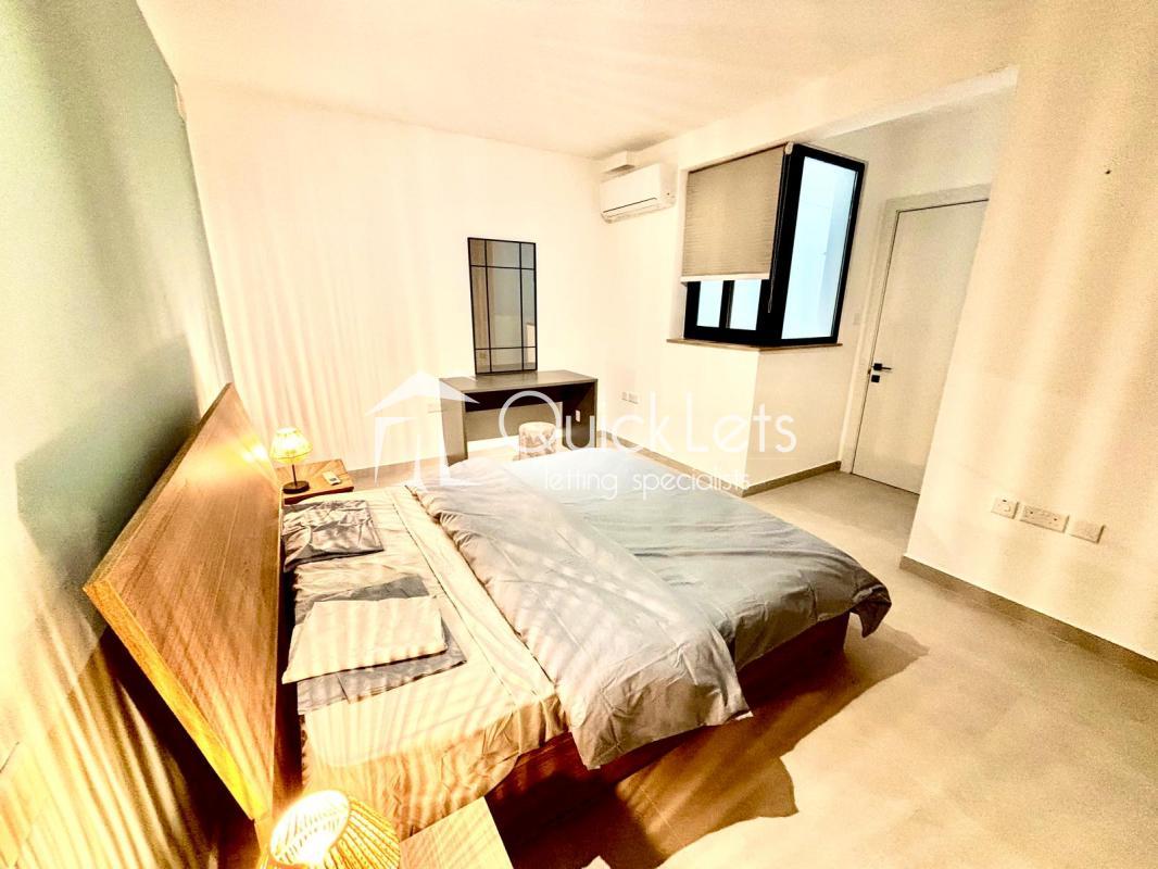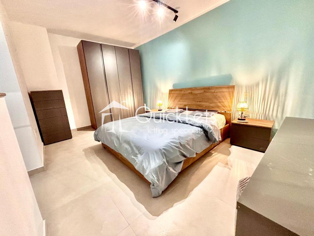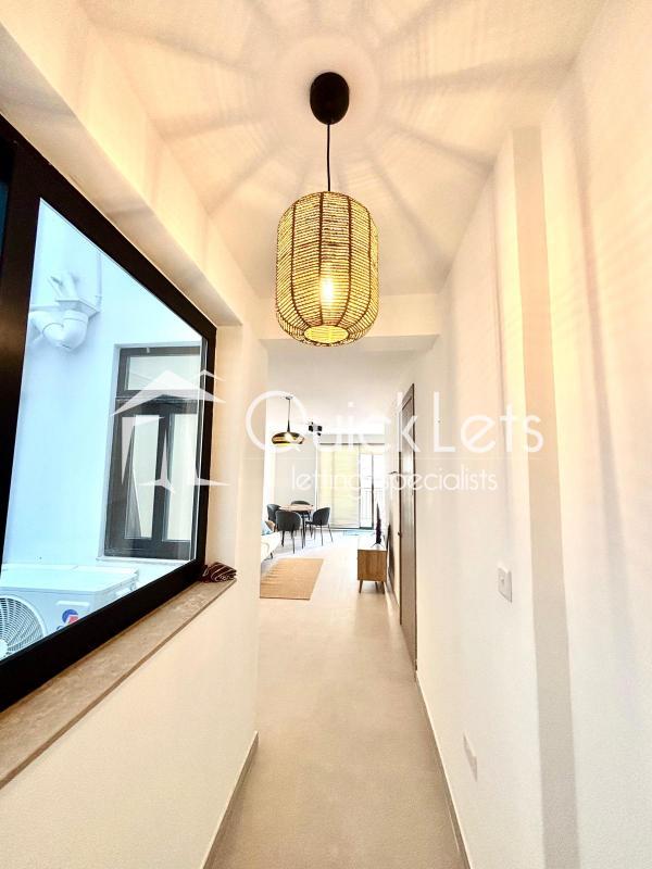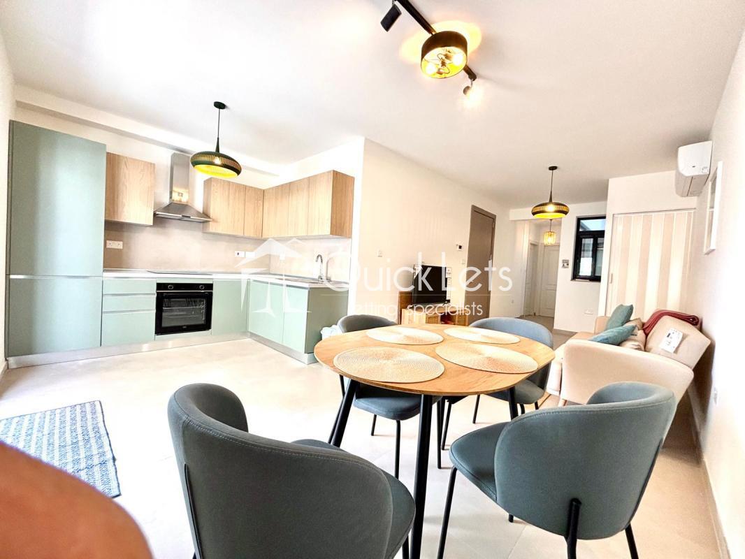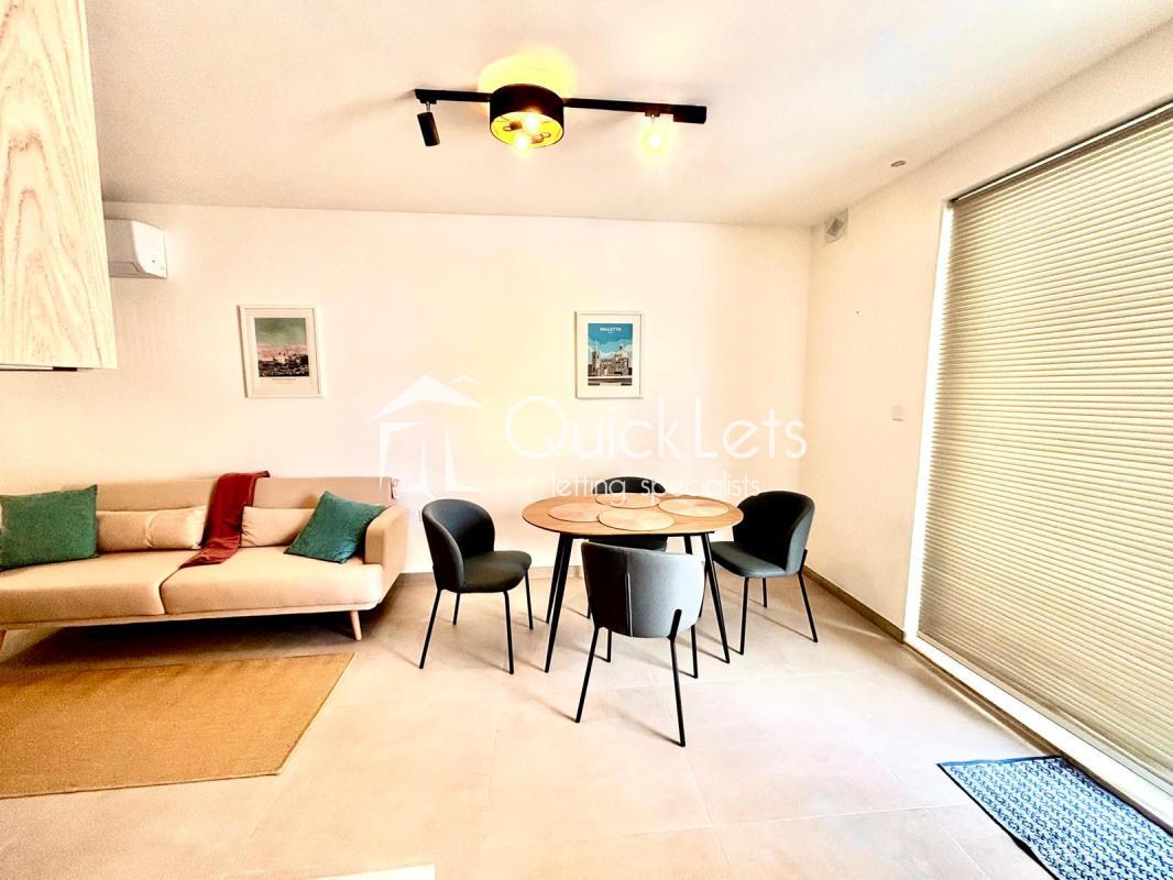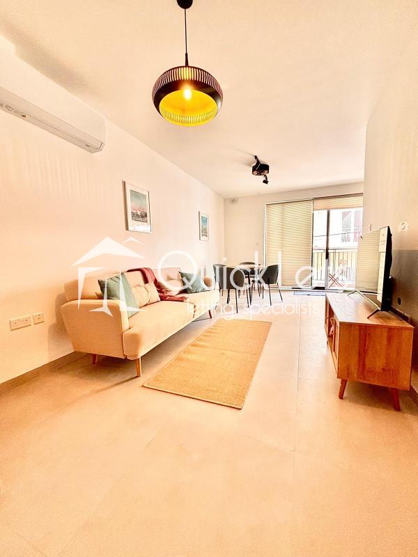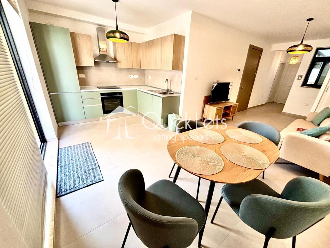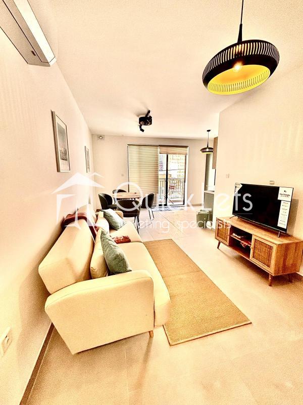 ST JULIAN'S - A fully furnished, brand new (2025) one double bedroom apartment located close to all amenities and within walking distance to Balluta Bay. The layout comprises an open-plan equipped kitchen/living/dining area leading to a front balcony, main double bedroom, main bathroom, and a utility room.