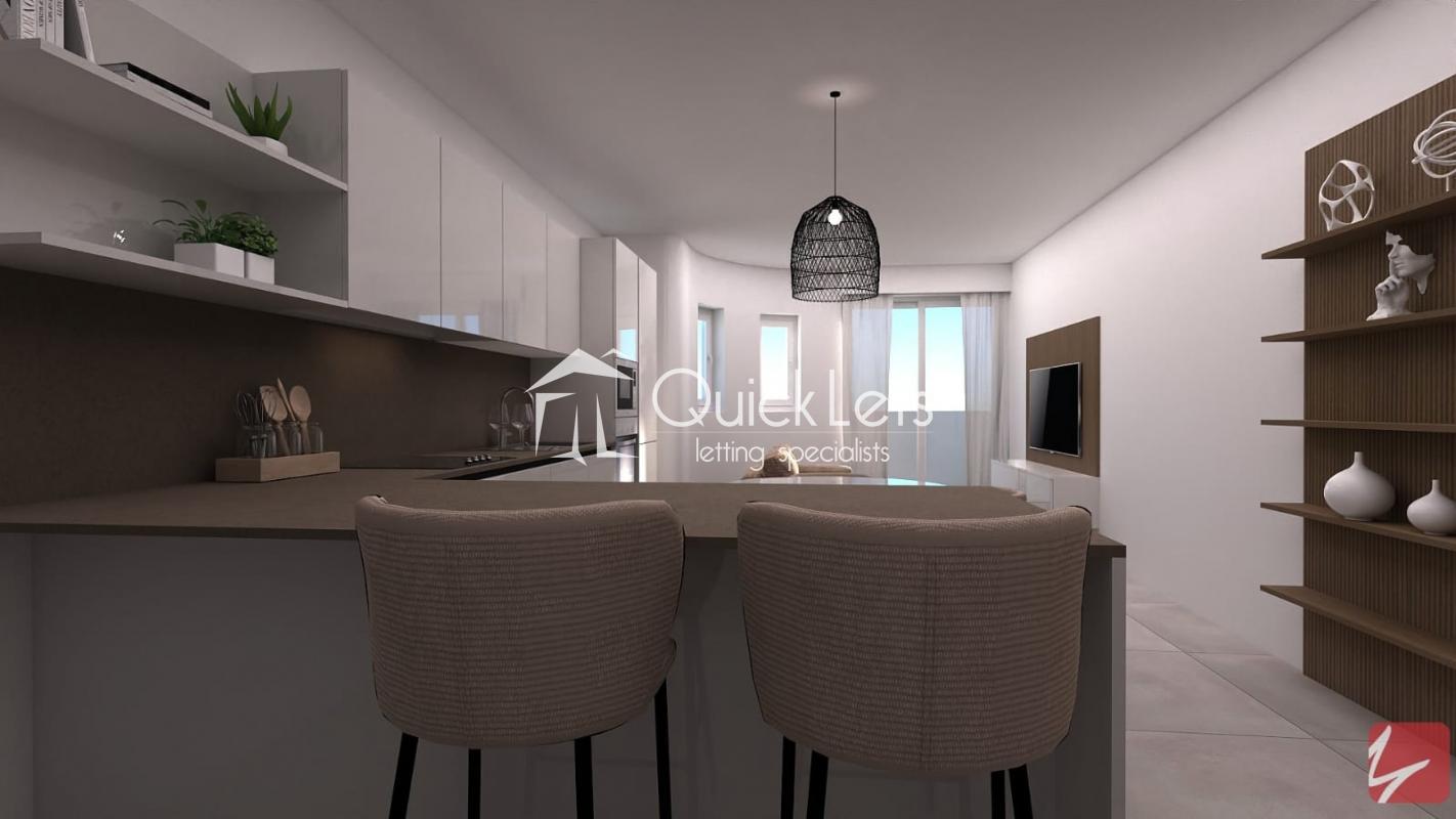 This brand new (2025) two-bedroom apartment. It comprises an open plan kitchen, living, dining area, dishwasher, washing machine, and it's fully airconditioned. It also has two double bedrooms, one with an ensuite and a bathroom, and a balcony at the back.
