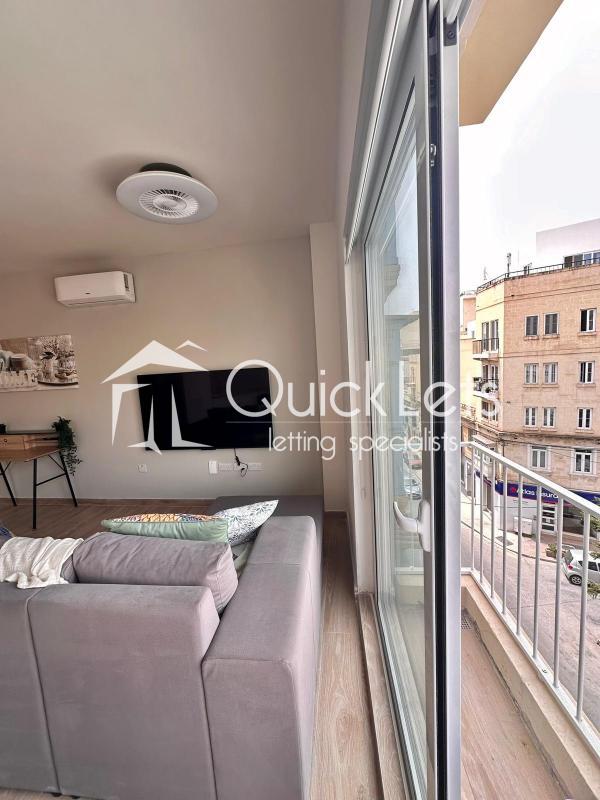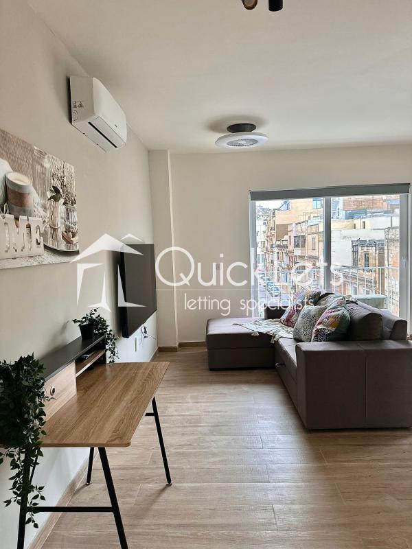 A modern one-bedroom, one bathroom corner apartment in Gzira. Fully furnished and fully air-conditioned, as well as ceiling fans. Elegant finish, full of natural light. Equipped with an Android Smart TV. Consists of an open-plan layout, kitchen and dining, living area, one double bedroom, and one bathroom with a shower. Available for 6 months.