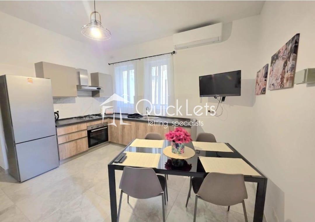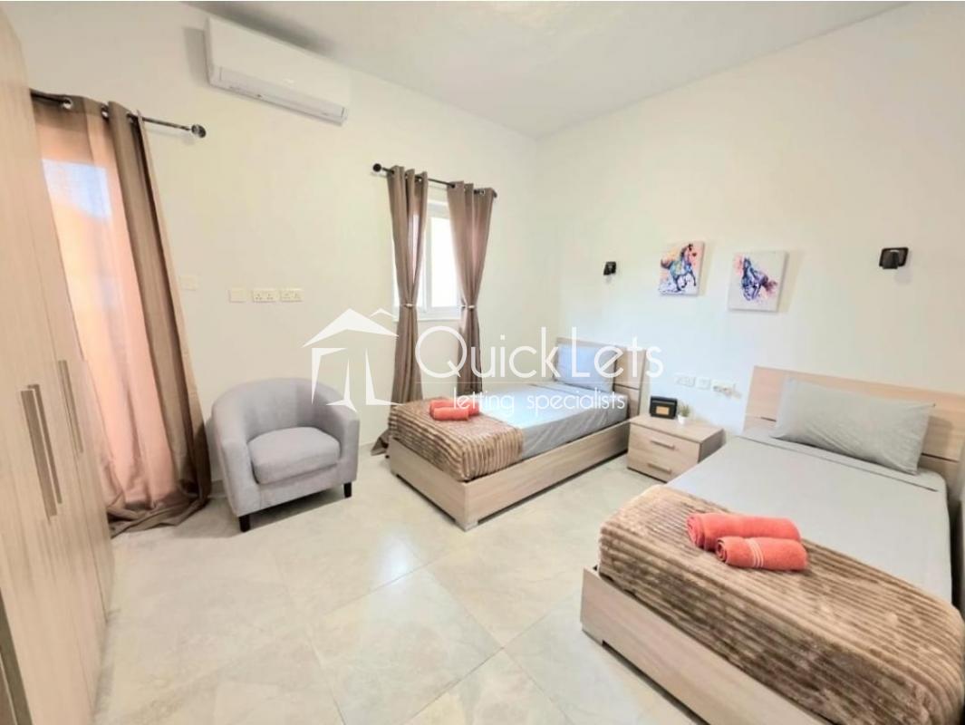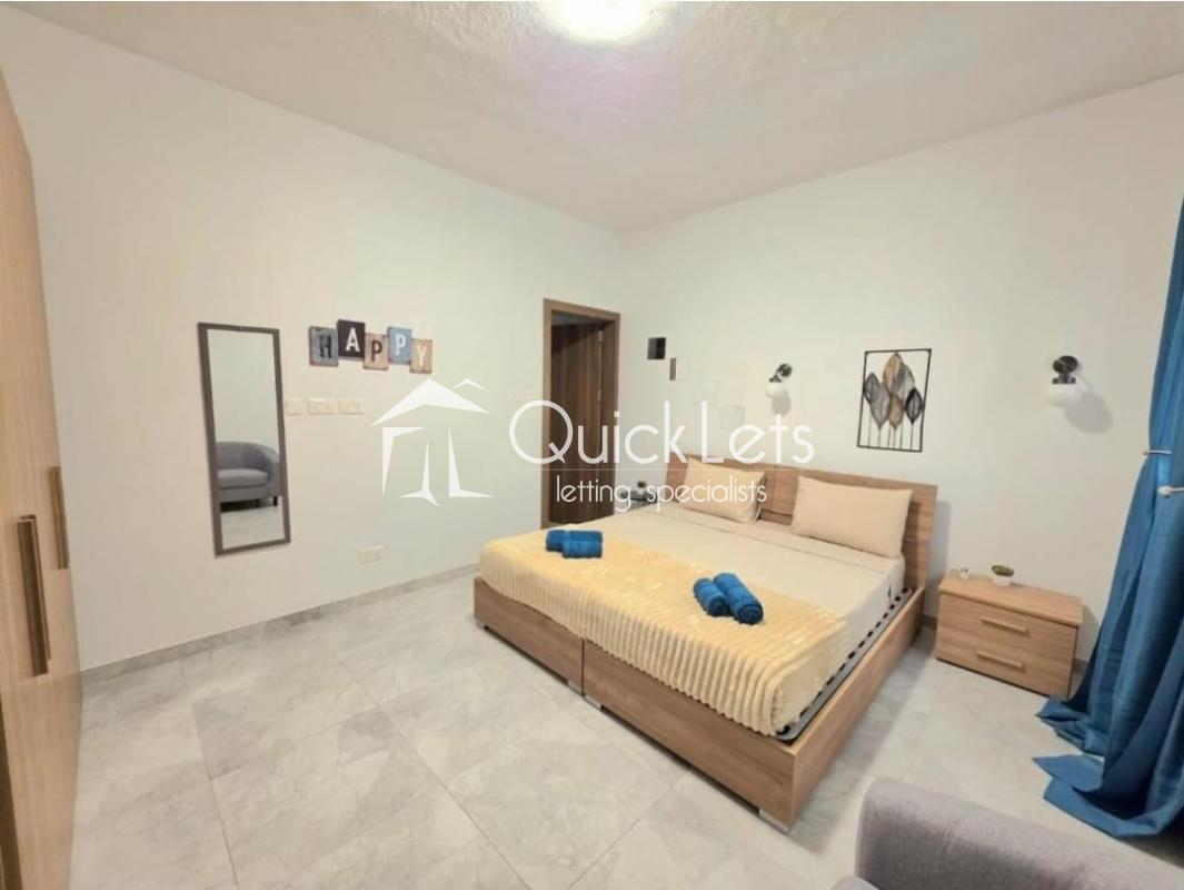 BUGIBBA -This modern, fully air-conditioned apartment is ideal for long-term living. Recently renovated, it features two bedrooms, two bathrooms, a spacious living area, a fully equipped kitchen, and a balcony. The apartment has everything you need for comfortable living.