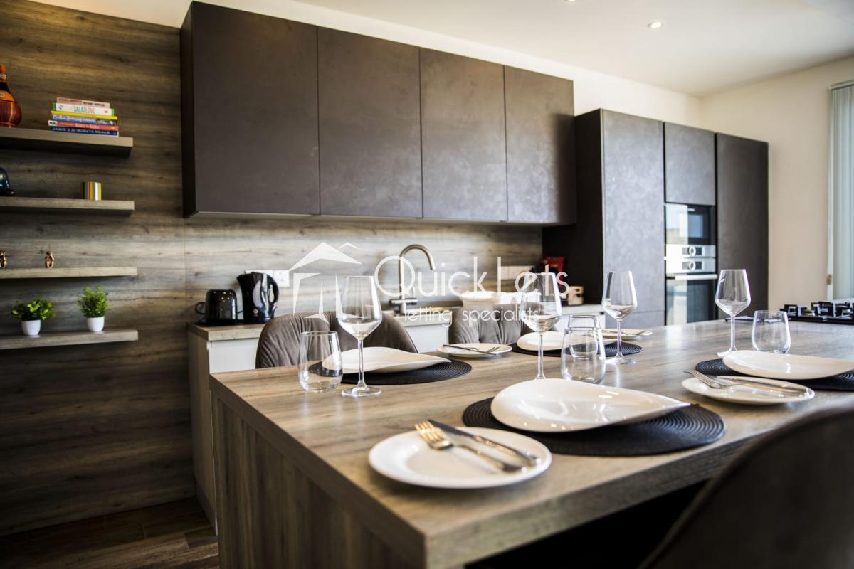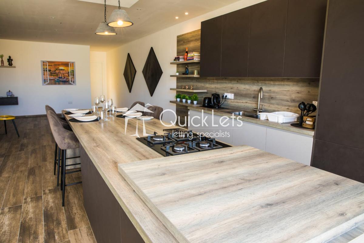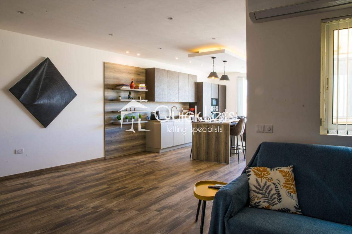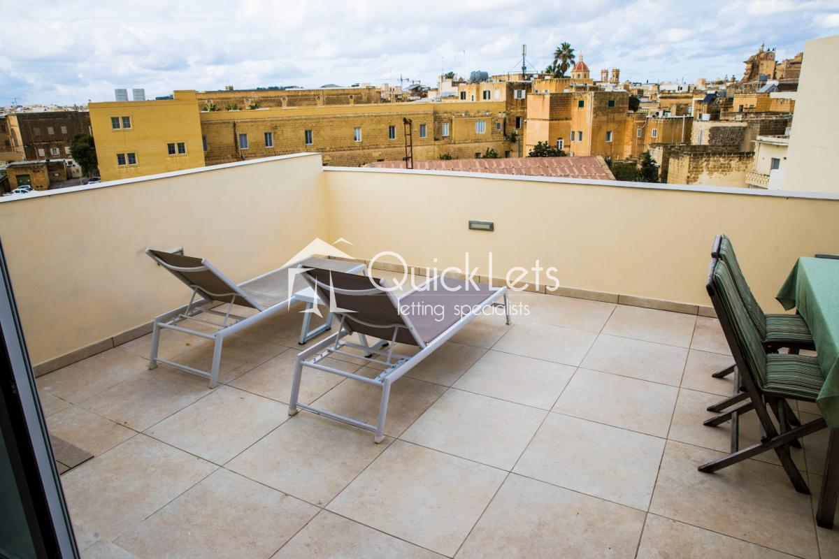 Modern two-bedroom, two-bathroom penthouse on the third floor with a lift. Includes large front and back terraces, private roof with Citadella views, open-plan kitchen/living/dining, dishwasher, washing machine, four A/C units, and Wi-Fi included. Central location close to all amenities.