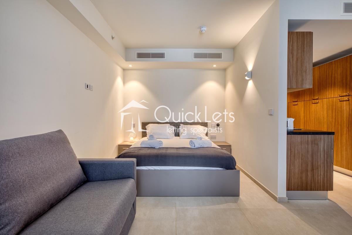 ST. JULIANS: Enjoy a stylish experience at this centrally-located place. Designed by Zaha Hadid, this suite overlooks the Iconic Mercury tower in Malta's most central Entertainment district. The apartment is part of a serviced complex with full amenities, including parking options, direct access to the leading fashionable shopping mall, and Malta's prime entertainment centre. Set on a high floor to ensure a peaceful rest, and is fully equipped with a full kitchen, private restroom, living/dining room, and balcony.