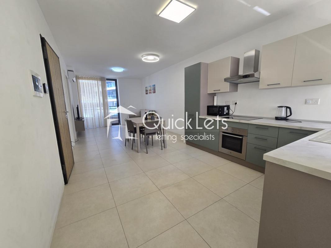 ST. JULIAN'S - Paceville | Brand New two-Bedroom, two-Bathroom Apartment. Discover this brand new, bright, and highly furnished apartment, perfectly positioned in Paceville near Mercury Towers and just a five-minute walk from the seafront. The property boasts an open-plan layout, seamlessly connecting the kitchen, living, and dining area, which opens onto a spacious balcony. It features two comfortable bedrooms, with the main bedroom benefiting from a private en-suite bathroom, complemented by a separate main bathroom. Each bedroom has its own balcony. The apartment is equipped with modern comforts, including air-conditioning throughout, a solar water heater, a washing machine, an oven, a microwave, and a TV. For added convenience, the building is served by a lift.
