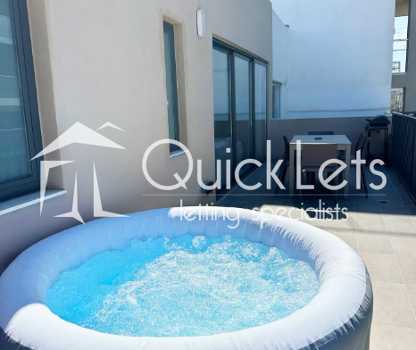 ST. JULIAN'S - Paceville, A Brand New one-Bedroom, two-Bathroom Apartment. Discover this brand new, bright, and highly furnished apartment, perfectly positioned in Paceville near Mercury Towers and just a five-minute walk from the seafront. The property boasts an open-plan layout, seamlessly connecting the kitchen, living, and dining area, which opens onto a spacious terrace with a jacuzzi and BBQ. It features one comfortable bedroom, with the double bedroom benefiting from a private en-suite bathroom, complemented by a separate main bathroom. The apartment is equipped with modern comforts, including air-conditioning throughout, a solar water heater, a washing machine, an oven, a microwave, and a TV. For added convenience, the building is served by a lift.