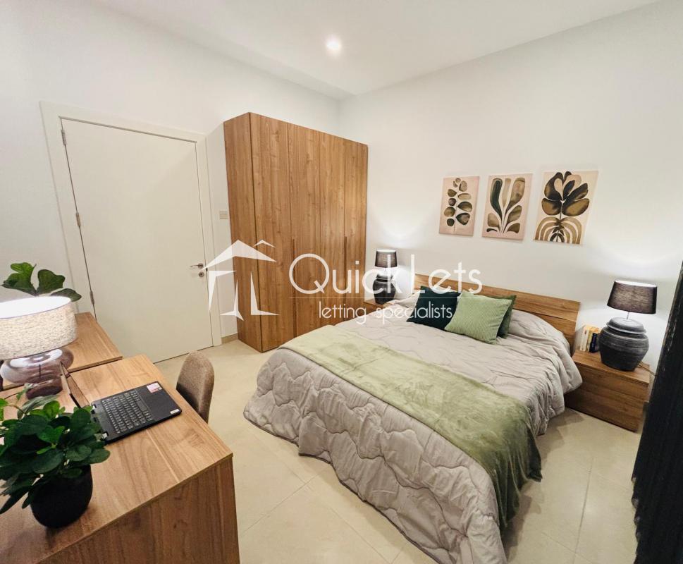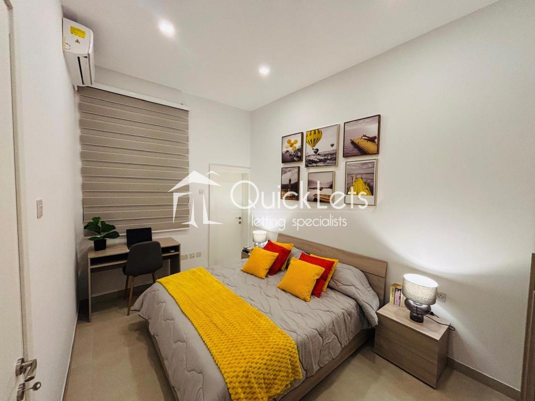 PIETA - Spacious and beautifully finished apartment offering 200 m² of comfortable living space. The property comprises three double bedrooms, two of which have an en-suite, and a larger third bedroom with its own private bathroom. It features a bright open-plan living and dining area with a fully equipped kitchen including a dishwasher and tumble dryer. Each bedroom is furnished with a desk, making it ideal for professionals or families. Located on the second floor (no lift), the apartment is pet-friendly and available from the 10th of November 2025. A well-presented home combining practicality and style in a peaceful residential area.