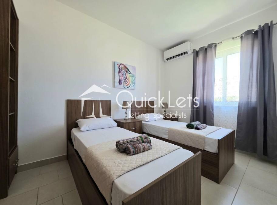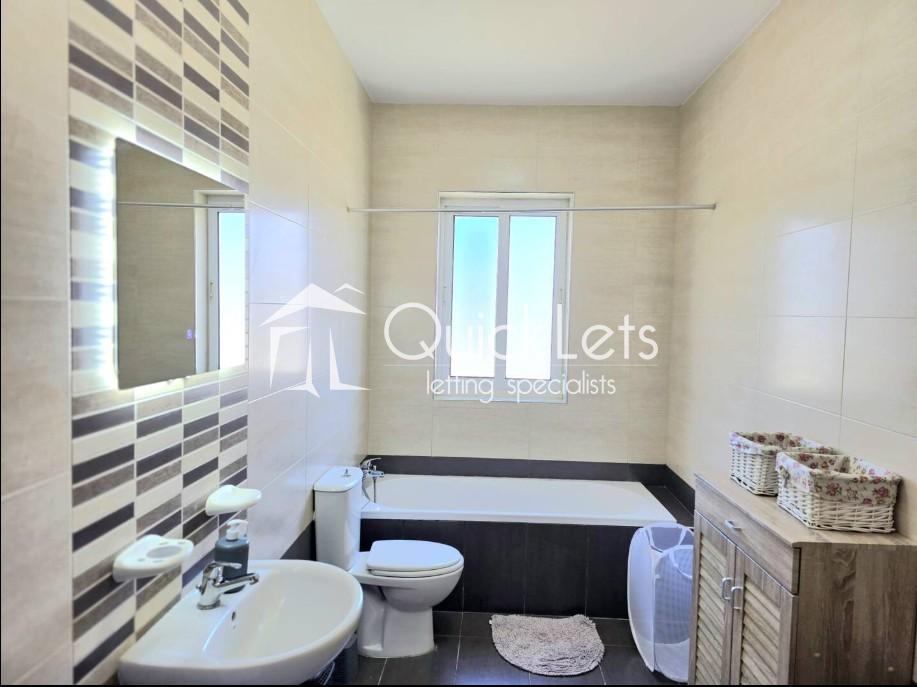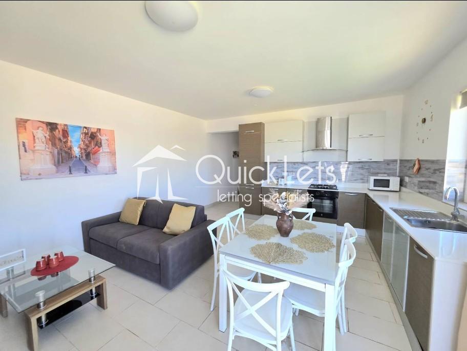 MELLIEHA - Modern three-Bedroom Apartment in Mellieħa – Pet Friendly & Close to the Beach. Available is a bright and stylish three-bedroom, two-bathroom apartment located in the sought-after area of Mellieħa, just minutes from the beach and all essential amenities. This fully air-conditioned home offers a modern design and comes fully furnished for your comfort and convenience. The apartment features a spacious living area with a comfortable sofa bed and LCD TV, a well-equipped kitchen with a washing machine, and a front balcony offering lovely town views. One of the bathrooms includes a bathtub, adding a touch of relaxation to your daily routine.