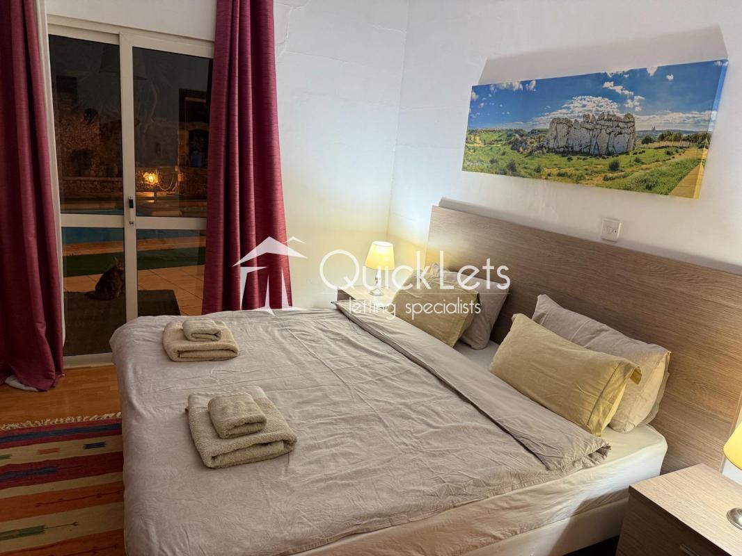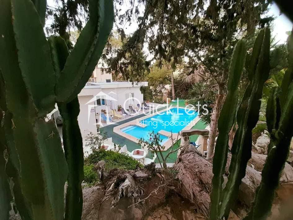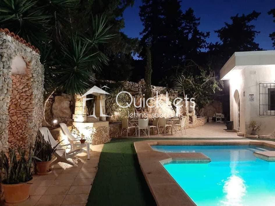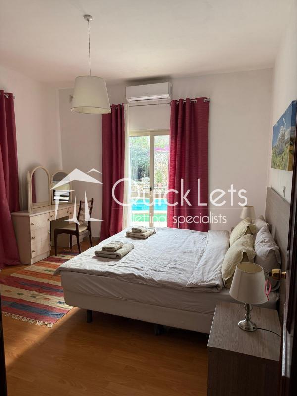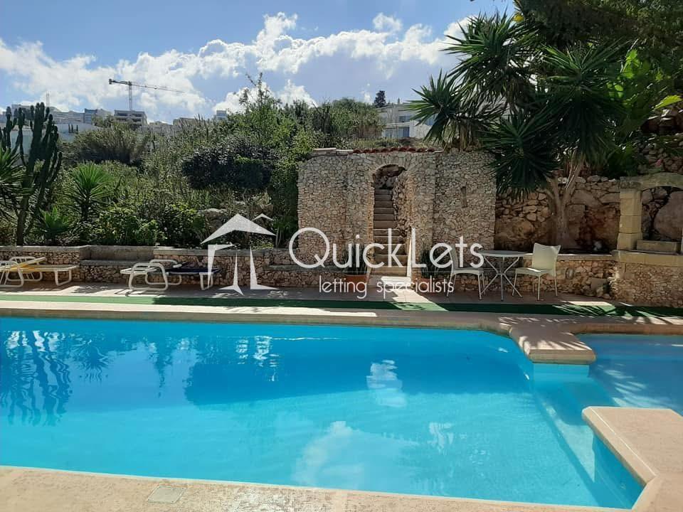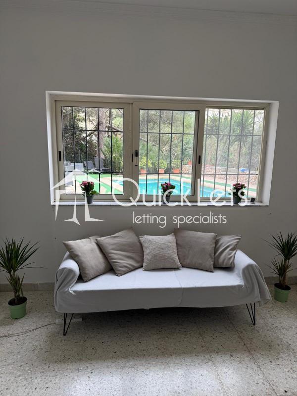MELLIEHA - FULLY DETACHED VILLA. Located in an attractive area of Santa Maria Estates, this fully detached villa comprises three double bedrooms, three bathrooms, a kitchen/dining area, and a spacious living area. The front porch has some amazing sea views, and in the backyard, there is a large private pool and plenty of outdoor space, followed by a private garden. In the ground floor area, there is also a garage for one car and some storage space. The property is fully air-conditioned, and it is fully furnished and equipped, and ready to move in. It is well worth viewing.