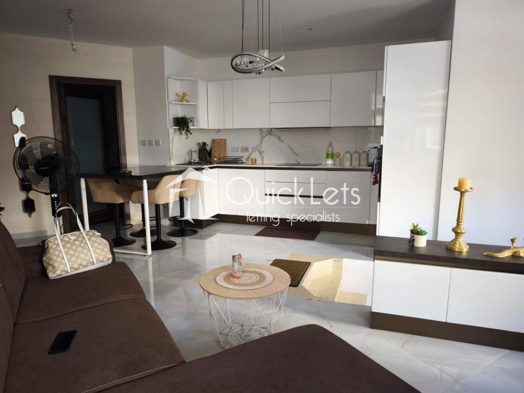 Bright and modern apartment served with a lift, located in a quiet area of Sannat. It features two bedrooms, one bathroom, a fully equipped kitchen with high-quality furniture, and a comfortable living area with access to a balcony. The property includes a washing machine and dishwasher