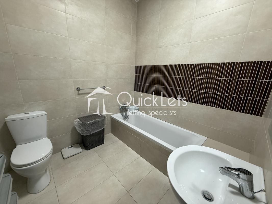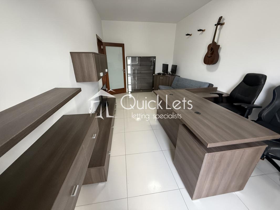 The apartment features a spacious kitchen and living area with a brand-new, fully equipped kitchen, including a dishwasher. The kitchen-living area opens onto a large balcony with a barbecue. There are two bedrooms with double beds, one of which has its own en-suite bathroom. The third bedroom is currently set up as a home office, but it can be converted into a third bedroom upon request. The office also has access to its own small balcony.