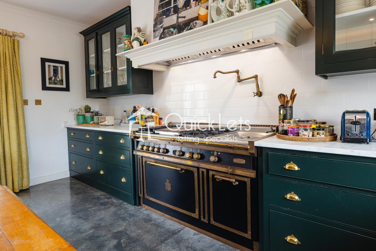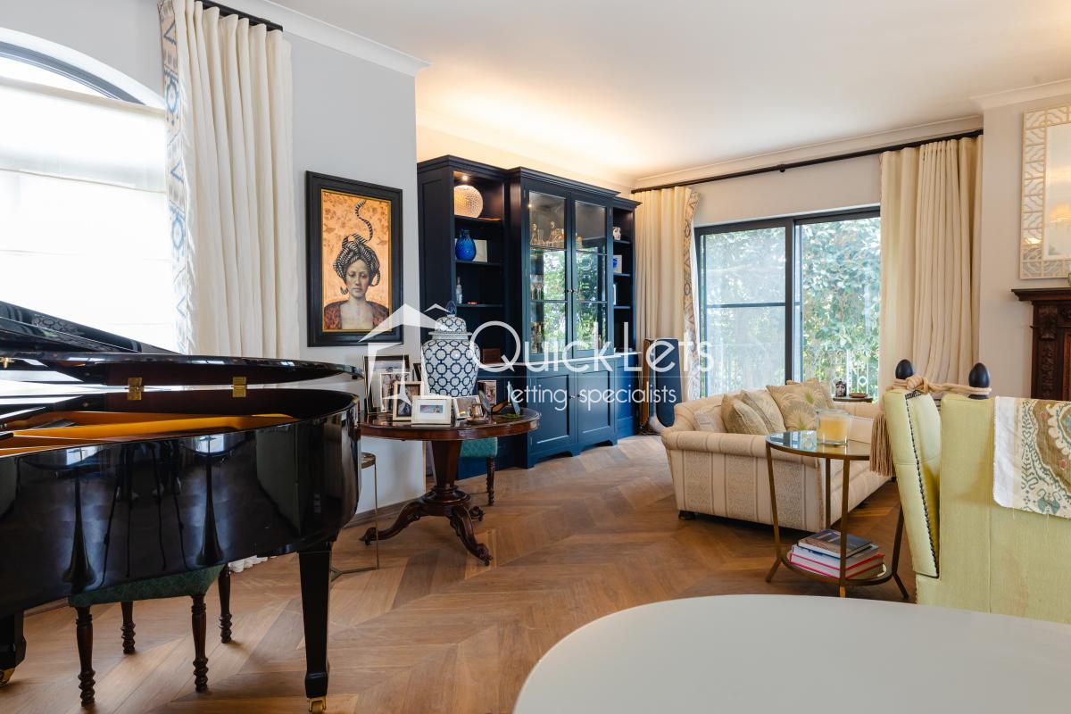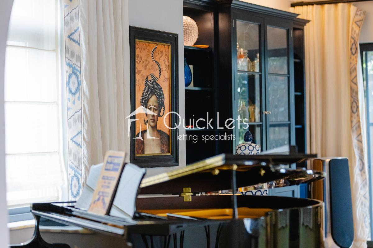 At the heart of the home is a warm and inviting living area with a traditional fireplace, perfect for cosy evenings. The separate dining room, enhanced by a grand piano, creates a sophisticated setting for family dinners and formal entertaining. The fully equipped kitchen blends practicality with elegant styling, making it perfect for both everyday living and hosting.
