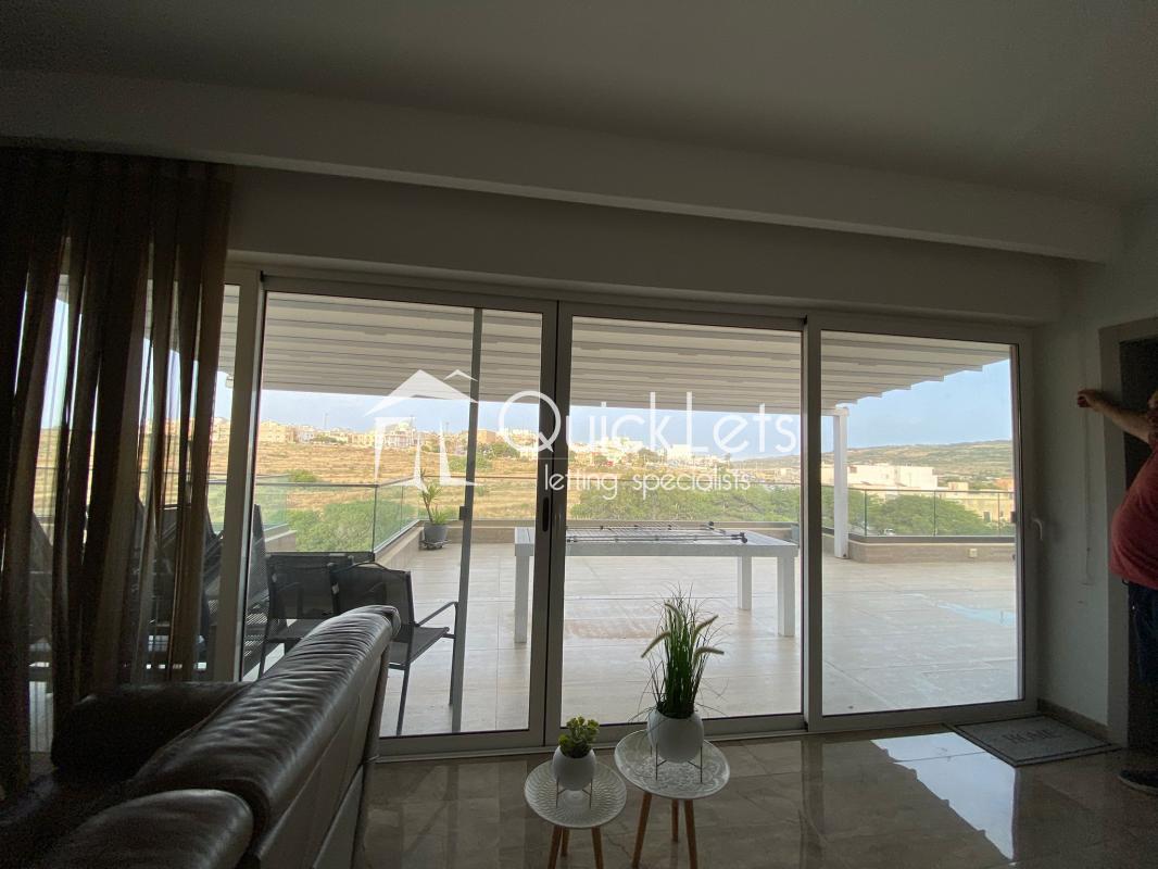Modern fourth-floor penthouse in Mgarr, enjoying breathtaking valley views, lift access, and an optional parking space. This home features a super-spacious front terrace ideal for BBQs and family gatherings, a bright open-plan kitchen and living area, one single bedroom, and a double bedroom with an ensuite. It also includes a main bathroom with a bathtub, a back balcony, and a fully equipped laundry area with a washing machine and tumble dryer. Fully furnished and ready to move in—perfect for anyone seeking comfort, style, and stunning views.