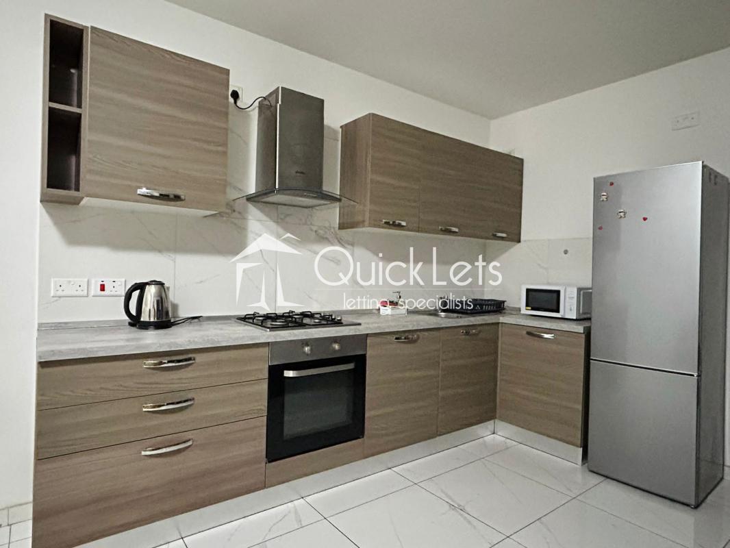 This modern apartment offers a spacious open-plan kitchen, living, and dining area that opens onto a large, elongated balcony—perfect for relaxing or enjoying outdoor dining. It features two well-sized bedrooms, a contemporary bathroom, and fully air-conditioned interiors. The open-plan layout creates a welcoming and practical living space, while the long front balcony floods the apartment with natural light. Ideal for individuals, couples, or small families, this property is conveniently located near daily amenities and excellent transportation links.