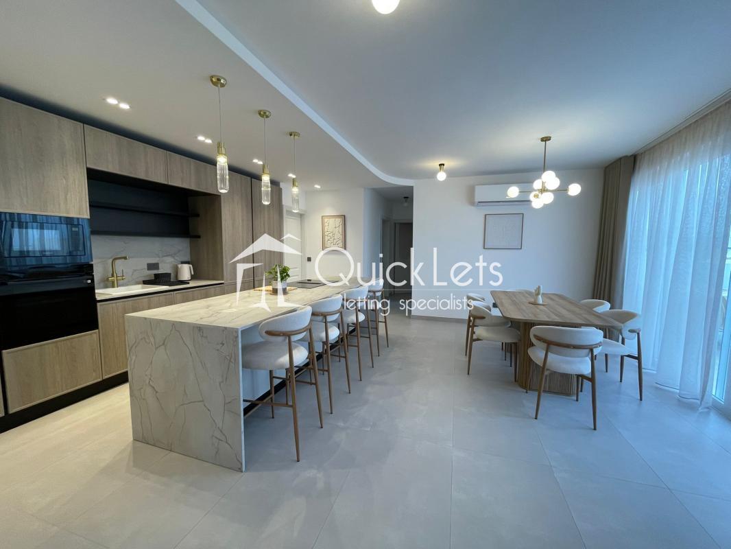 SAN GWANN - Brand new (2025) 200sqm corner penthouse, currently being finished and furnished. Located on the fifth floor, this property features three double bedrooms (main with en-suite), a spacious open-plan kitchen/living/dining area leading to a large corner sunny terrace with a pool.