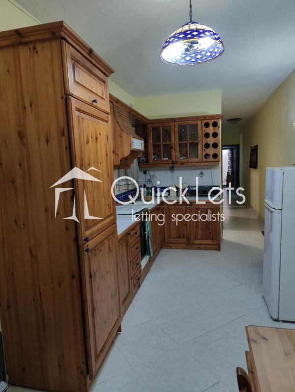 This ground-floor apartment, located minutes away from the sea, offers a well-maintained wooden kitchen with plenty of storage space, a cosy living room, two bedrooms, one with a double bed, and another with two single beds, both air-conditioned.
