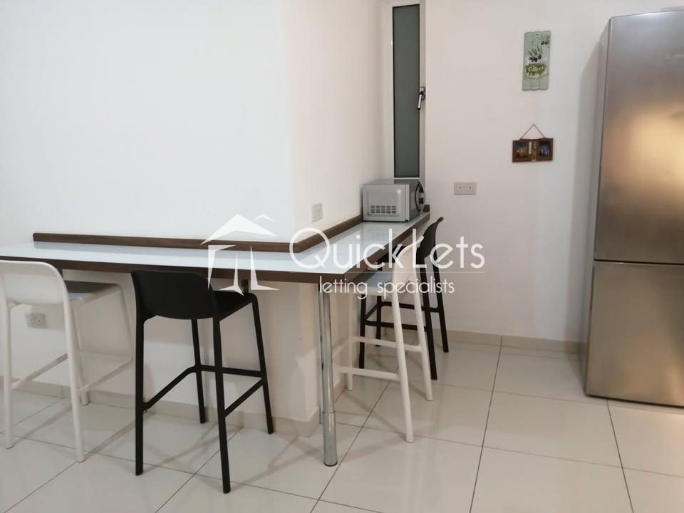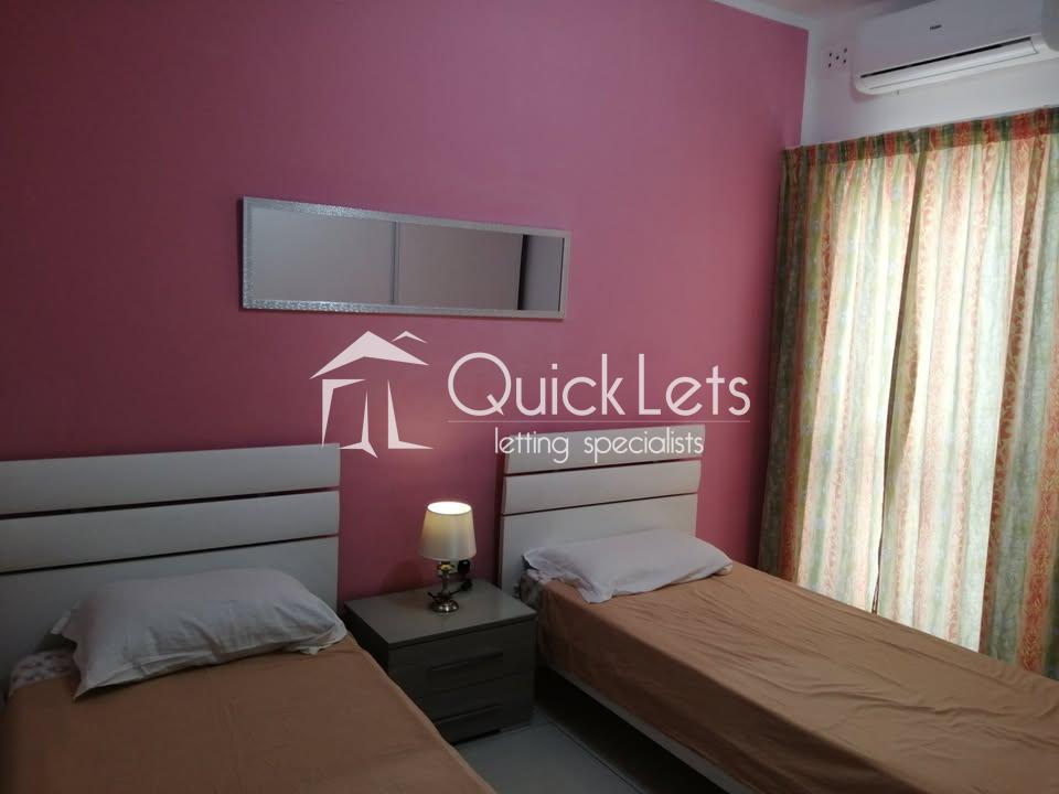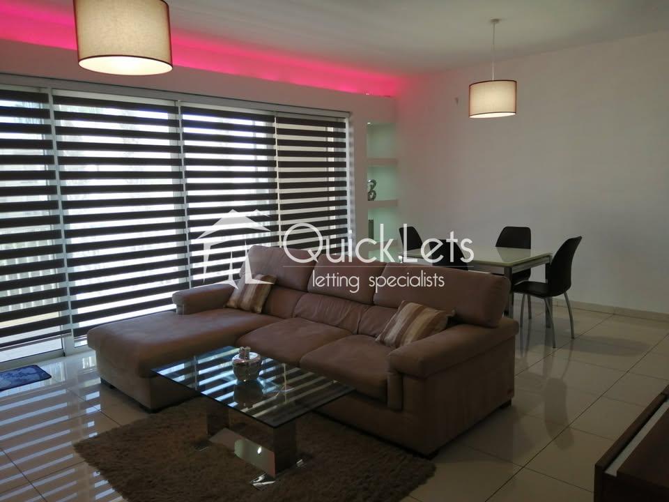 BUGIBBA - Spacious three-bedroom two-bathroom apartment in Bugibba with a separate utility room and two terraces. Bright open-plan layout, lift access, well-finished throughout. Quiet yet central location, close to seafront and amenities.