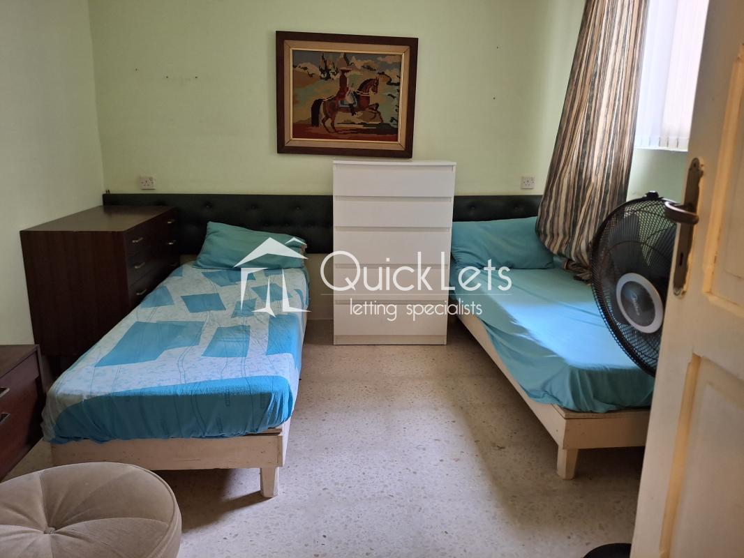 MARSALFORN, Gozo - Here is this apartment on the first floor, accessed by 13 steps. It is an older style property with a front balcony & added benefits of a small rear terrace & rear balcony suitable for a laundry area. It has three double bedrooms & one bathroom with a shower over a bathtub. The location is a 2-minute walk from the seafront & a seven-minute stroll to a dog-friendly swimming area at Qbajjar