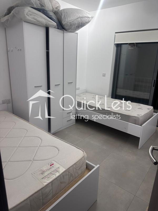 The property enjoys a cosy front balcony ideal for fresh air in the evenings, as well as two modern bathrooms: one with a walk-in shower and the other with a WC and a convenient washing machine. Finished in neutral tones with quality tiling and furnishings throughout, this home is perfect for a couple, small family, or two professionals who want a clean, contemporary space in a well-connected location, close to bus stops, shops, and easy access to Msida, Gżira, and central Malta.