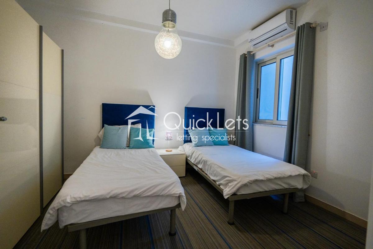 Bright room for rent in Sliema, located in a spacious and well-kept apartment. The room has two single beds, ideal for one person wanting extra space or two people sharing. It is fully furnished, comfortable, and naturally well lit.