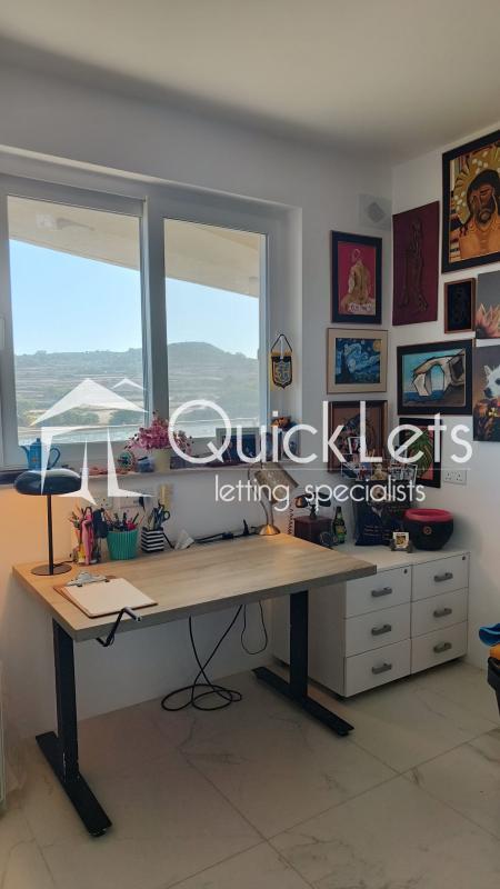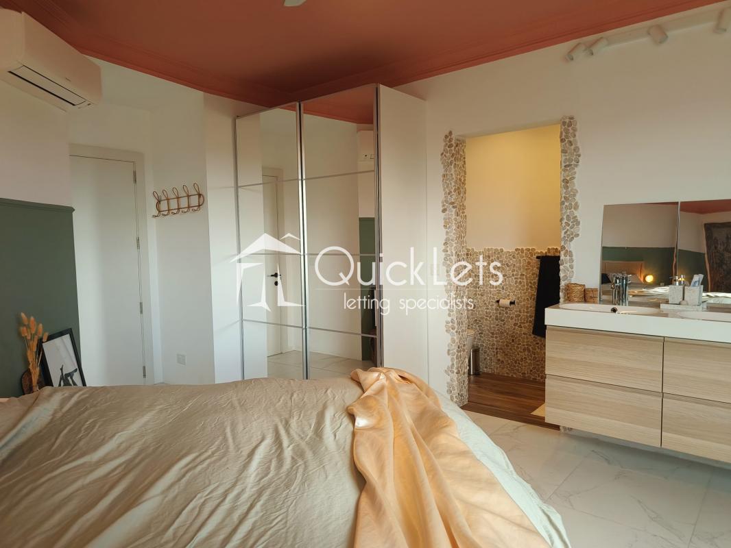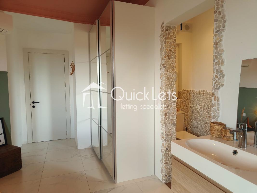 Designer-finished two-bedroom, two-bathroom apartment with a spacious study room in St. Paul’s Bay, offering modern interiors, open-plan living, fully equipped kitchen, natural light throughout, air-conditioning, balcony, lift access and proximity to promenade, beaches, cafes, shops and public transport, ideal for professionals or families seeking comfort, style and convenience in a prime coastal location for long-let rental.