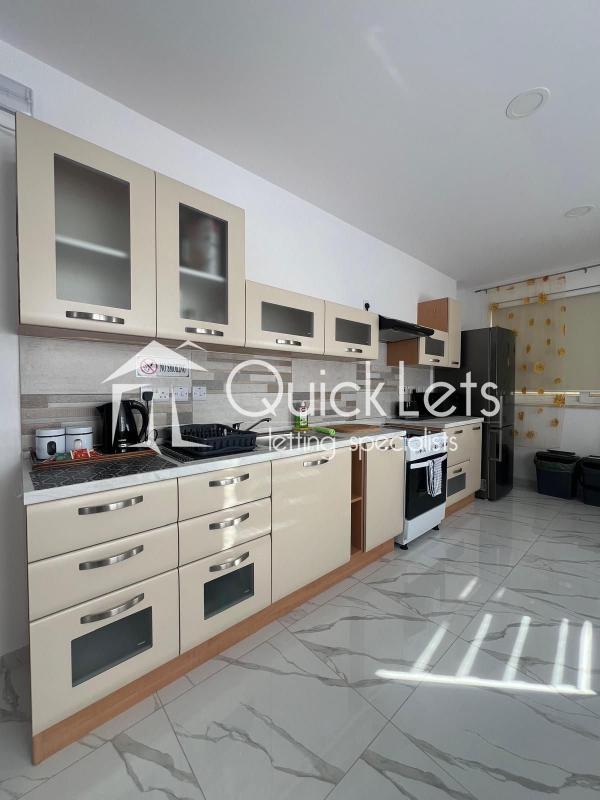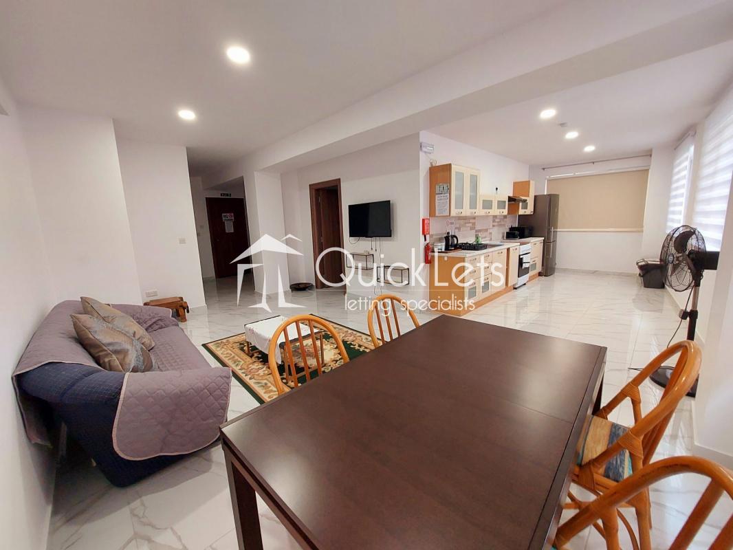 A very bright and spacious two-bedroom apartment featuring a generous open-plan kitchen, living and dining area, and a well-appointed bathroom. The property enjoys an airy layout and comfortable living spaces, ideal for modern city living in a prime Sliema location.