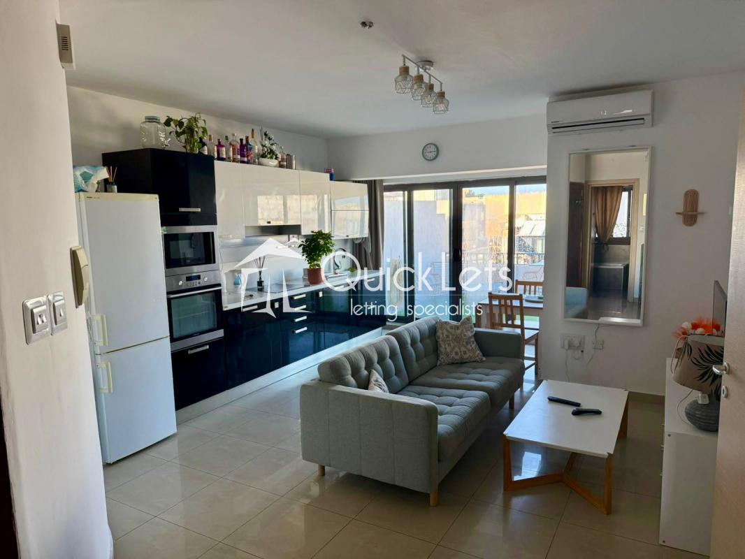 The property features a bright open plan layout with a kitchen, dining area, and living space, leading onto a front terrace.