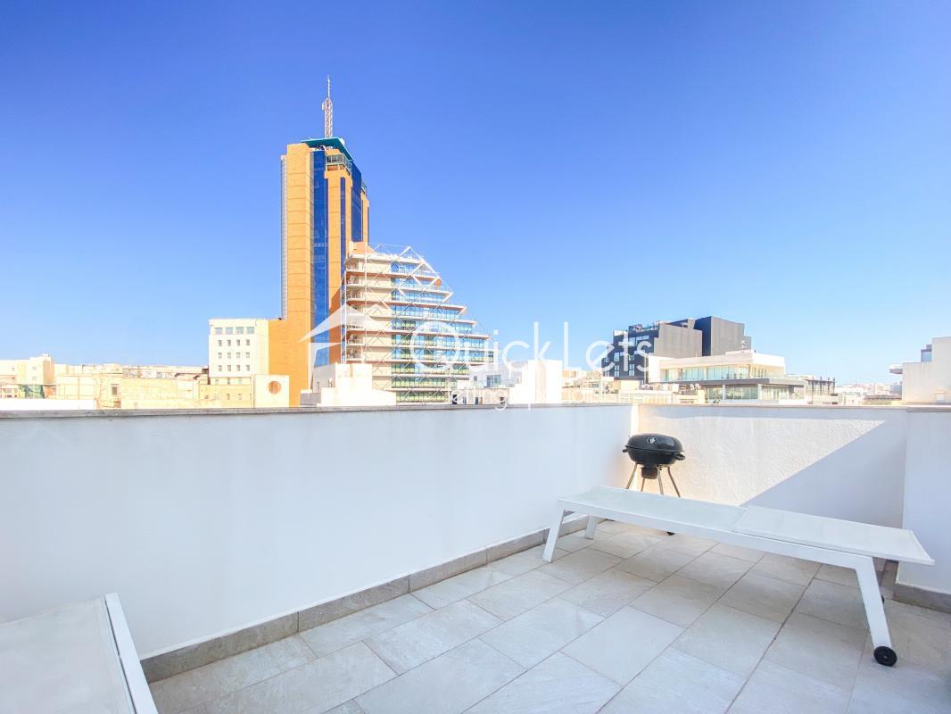 ST. JULIAN'S - Paceville, a Brand New (2025) two-bedroom, one-bathroom penthouse. Discover this brand new, bright, and highly furnished penthouse, perfectly positioned in Paceville near Mercury Towers and just a five-minute walk from the seafront. The property boasts an open-plan layout, seamlessly connecting the kitchen, living, and dining area, which opens onto a spacious terrace with a BBQ. It is equipped with modern comforts, including air-conditioning throughout, a water heater, a washing machine, an oven, a microwave, and a TV. For added convenience, the building is served by a lift. All pets are welcome. Wifi and W&E bills include the price.