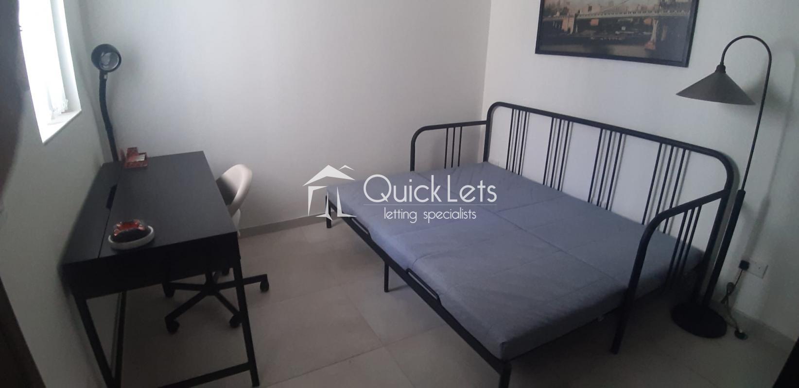 MSIDA - Modern apartment in Msida featuring two bedrooms and two en-suite bathrooms. Open plan equipped with a fully fitted kitchen including dishwasher and dining and living area leading to the balcony, giving you a bright, spacious, and comfortable space. One of the bedrooms has a double bed, and the second one has a sofa bed (opening) and a desk.