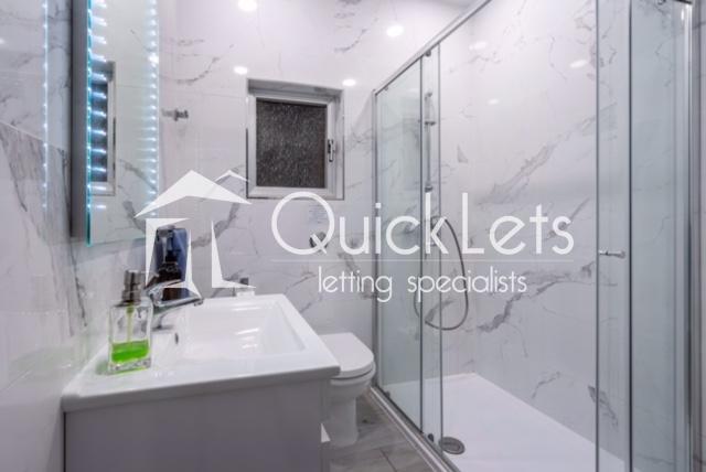 The kitchen is fully equipped with brand-new appliances, offering everything needed for a comfortable stay. The elegant bathroom is finished with marble and features a modern walk-in shower.