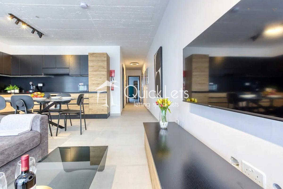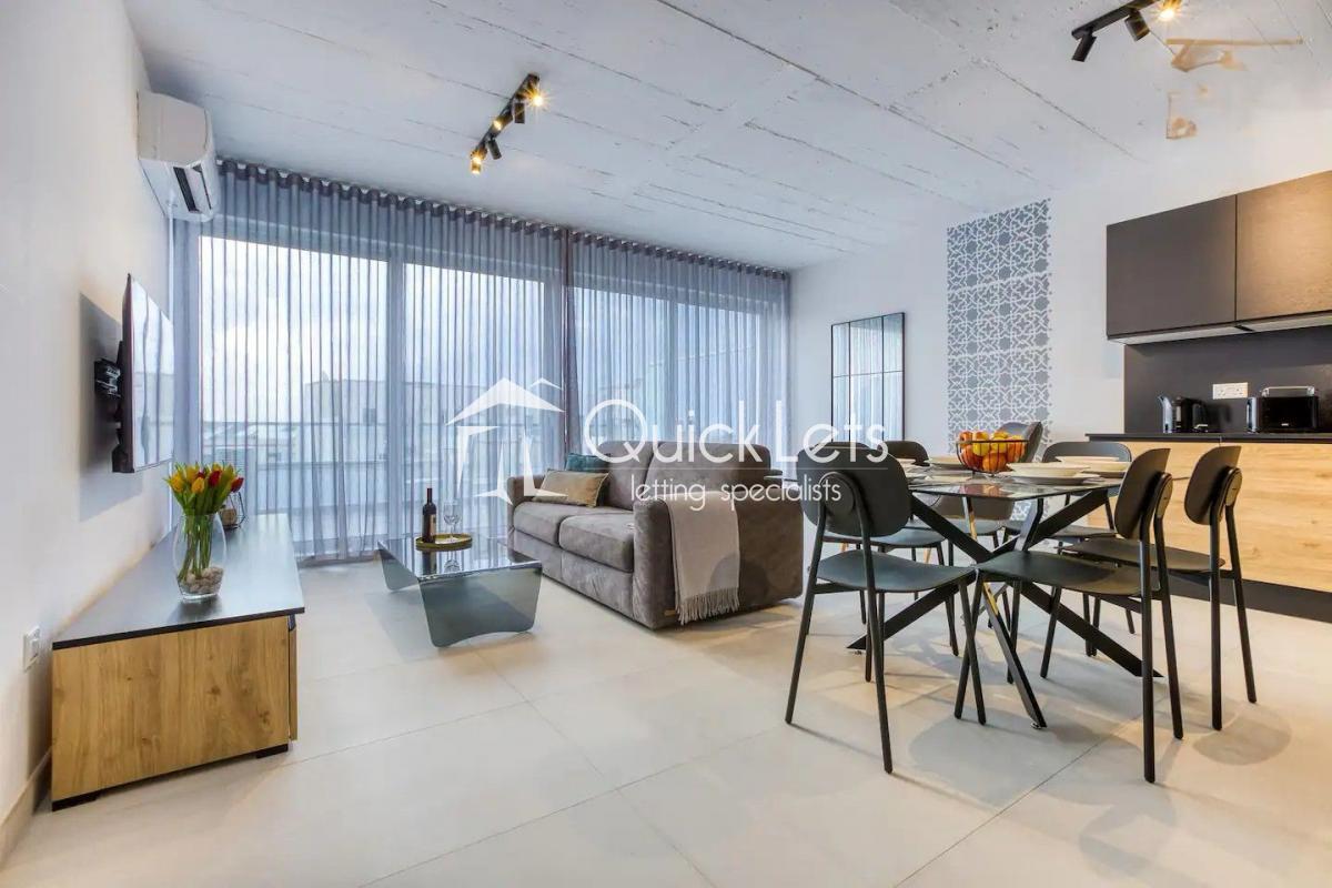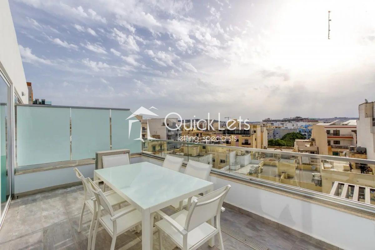 St Paul's Bay - A very bright and spacious penthouse featuring a two-bedroom, two-bathroom, including a main bedroom with an ensuite. The property boasts an open-plan kitchen, living, and dining area finished with modern furniture and contemporary finishings, and is complemented by both front and back terraces, enjoying sea views, ensuring excellent natural light throughout, and ideal indoor-outdoor living. Utilities are included, and a washing machine is provided for added convenience. Close to all amenities and bus links.