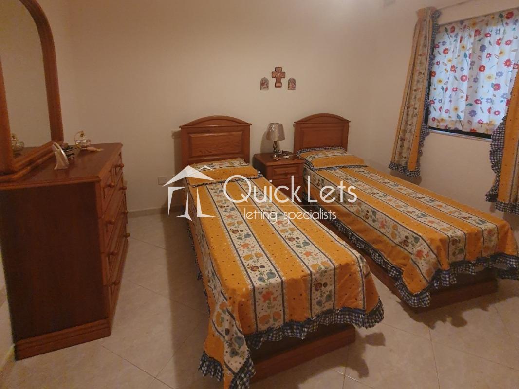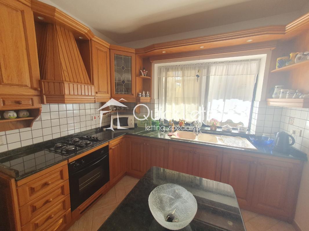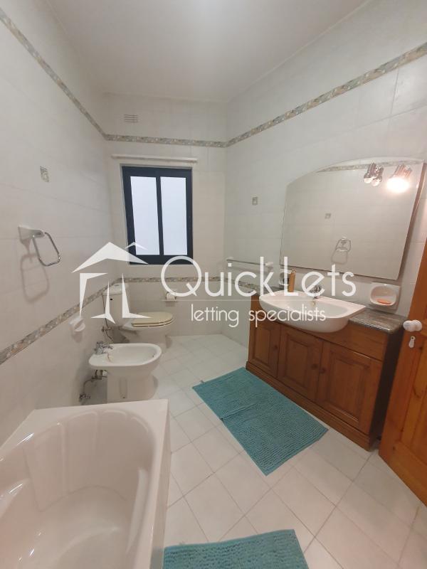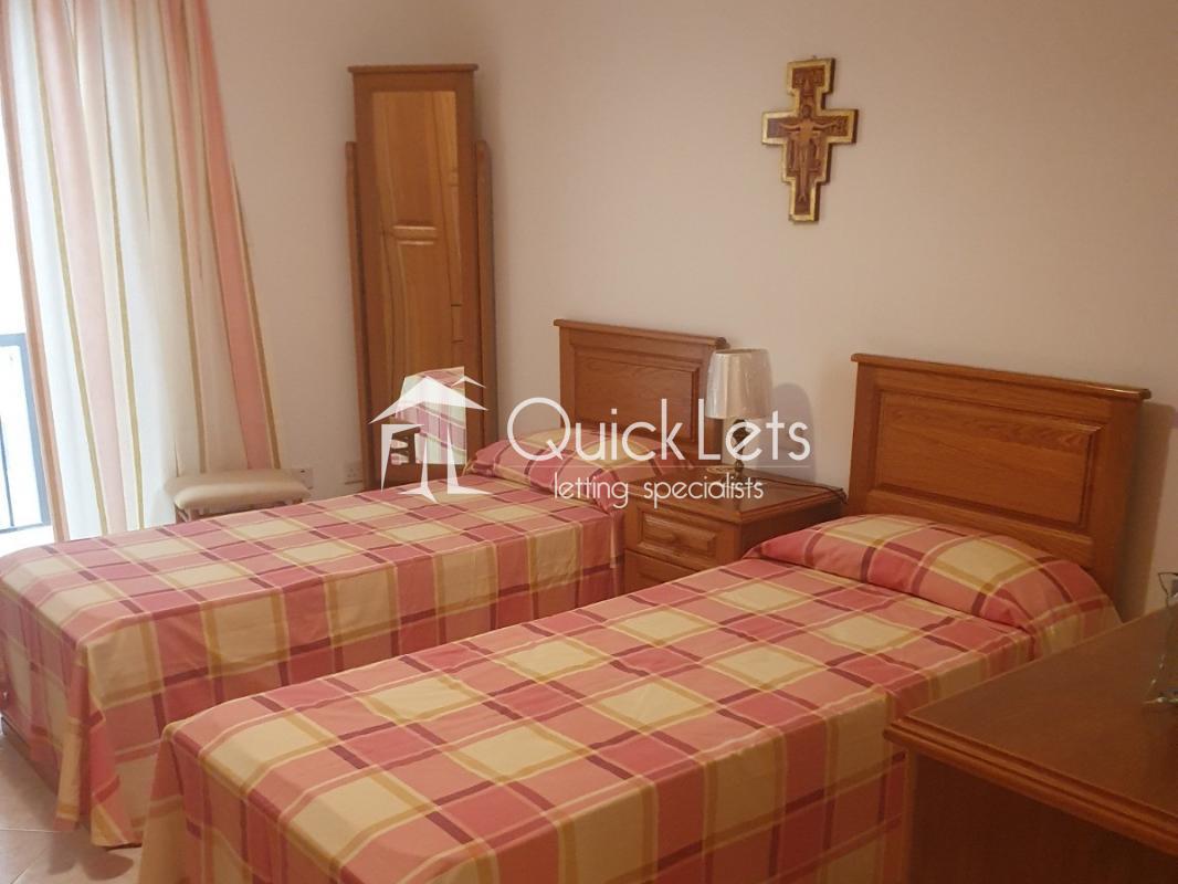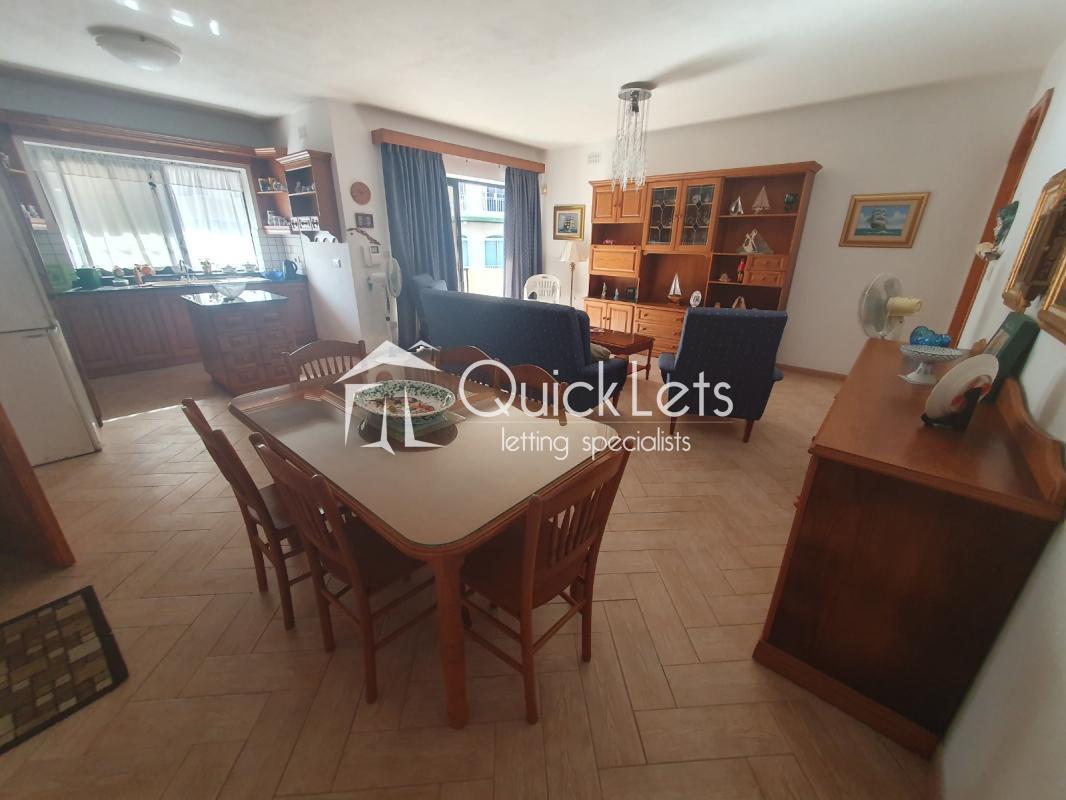 QAWRA - Three-bedroom apartment located in a quiet area of Qawra, close to the beach, bus stops, and all daily amenities. The property consists of a very large open plan kitchen/living/dining, three double bedrooms, a main bathroom equipped with a bathtub, and an en suite equipped with a shower. The main bedroom is equipped with a double bed. The second bedroom is equipped with two single beds, and the third bedroom is also equipped with two single beds. There are also two good-sized balconies, one in the front and one in the back of the apartment. The kitchen is fully equipped with all necessary appliances. The property is fully equipped and ready to move in. Very well kept and maintained, and worth viewing.