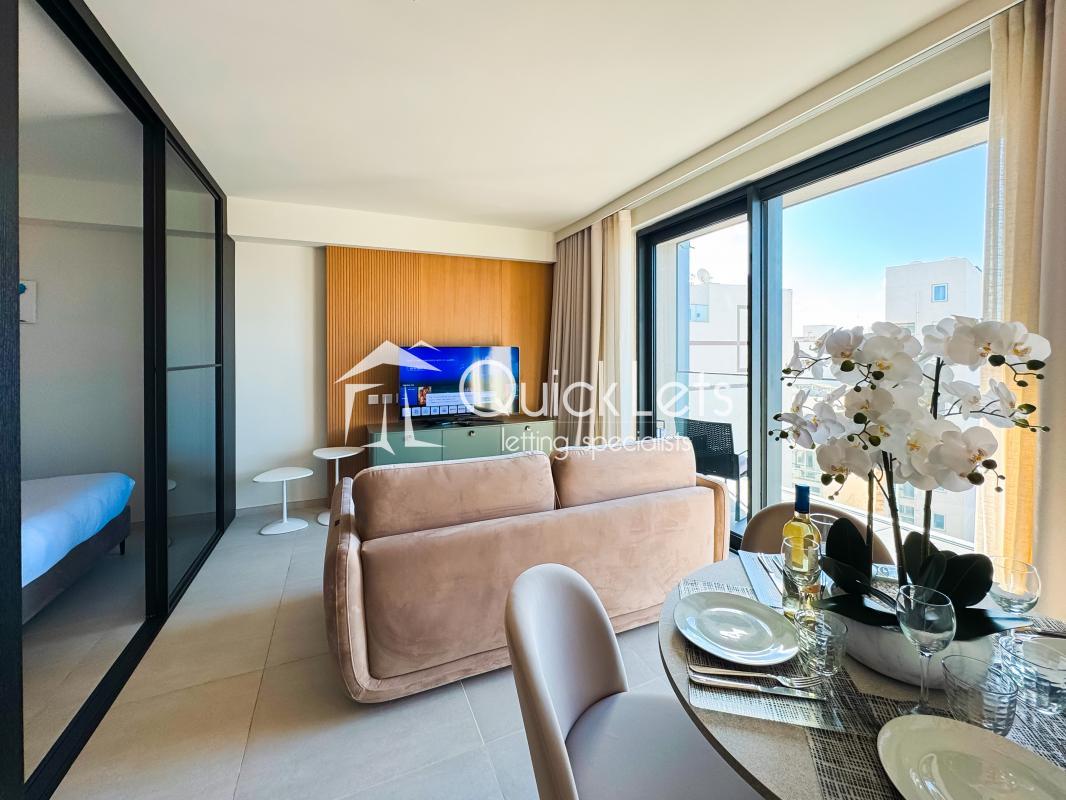 ST. JULIANS: Enjoy a stylish experience at this centrally-located place. Designed by Zaha Hadid, this suite overlooks the Iconic Mercury tower in Malta's most central Entertainment district. The apartment is part of a serviced complex with full amenities, including parking options, direct access to the leading fashionable shopping mall, and Malta's prime entertainment centre. Set on a high floor to ensure a peaceful rest, it is fully equipped with a full kitchen, private restroom, living/dining room, and balcony.
