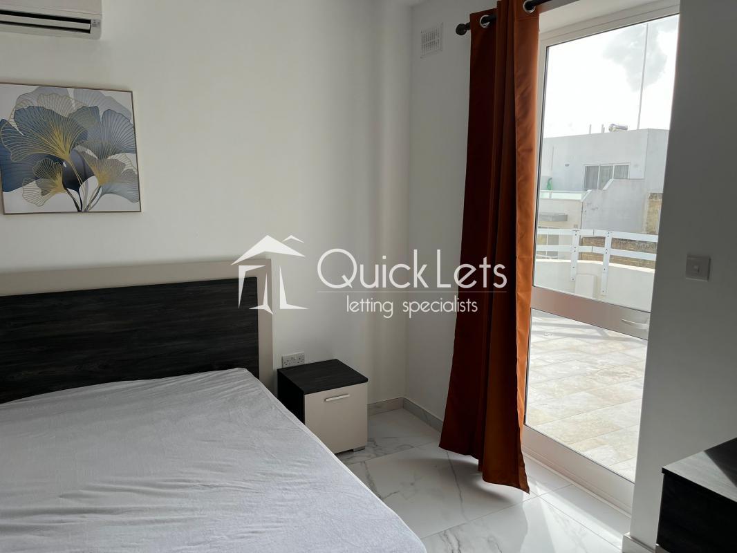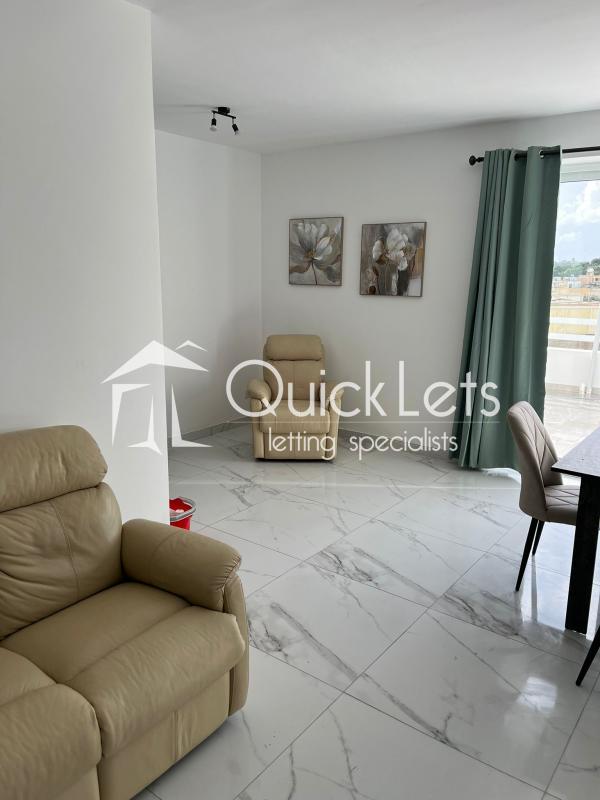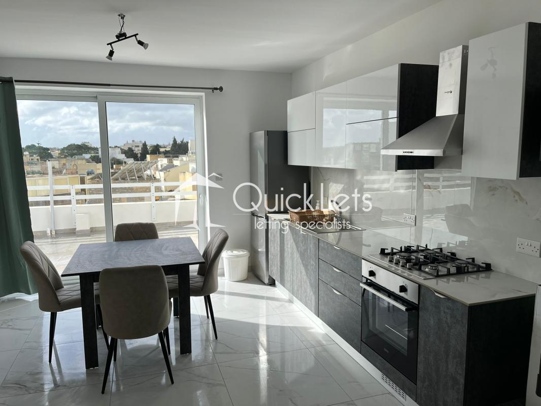 TARXIEN - Modern One-bedroom penthouse, block served by a lift. The penthouse features a bright and spacious open-plan kitchen, dining, and living area, fully equipped and leading onto a front terrace. The bedroom is well-sized, with a double bed and access to the terrace, the bathroom, and the utility room. Finished to a high standard throughout, the penthouse is furnished in a modern style and is fully air-conditioned for comfort. It comes fully equipped with a TV and sofa, fridge/freezer, microwave, oven, hob and hood, washing machine, and blinds on all windows. All amenities are within walking distance, including shops and a bus stop, making it an ideal home for comfortable and convenient living.