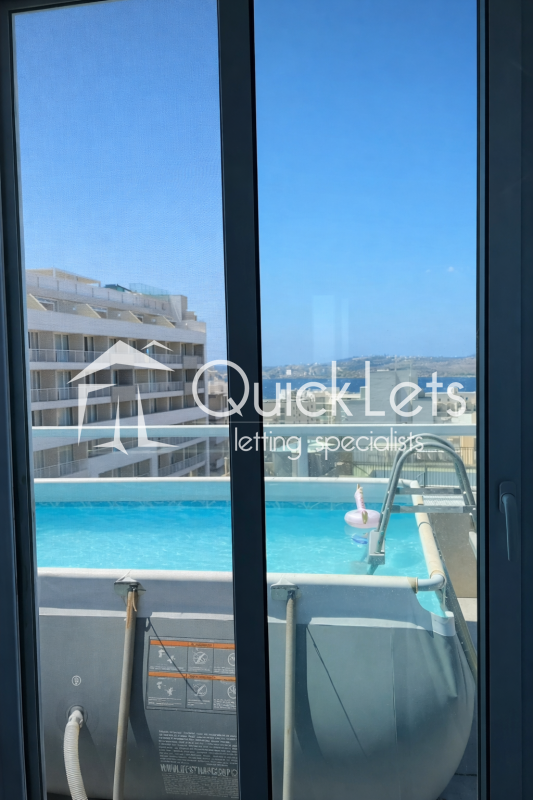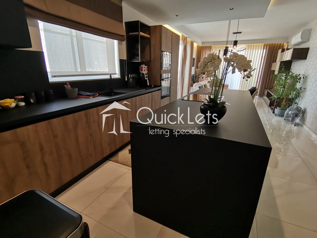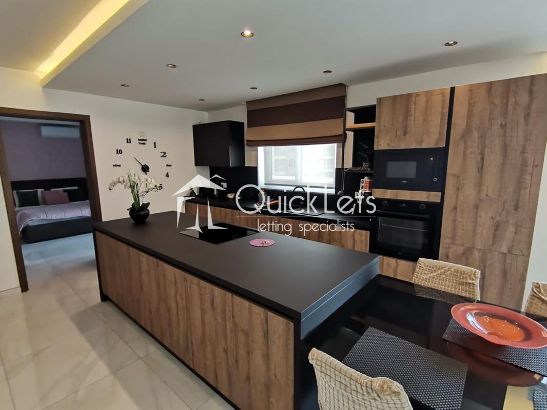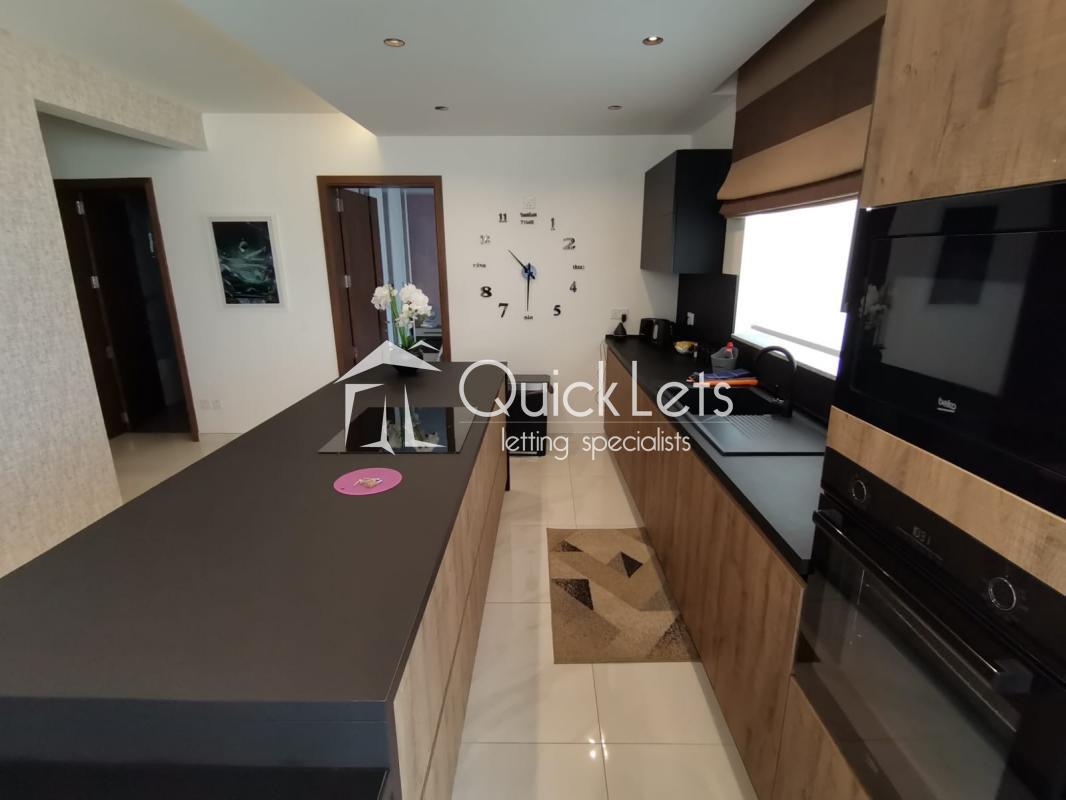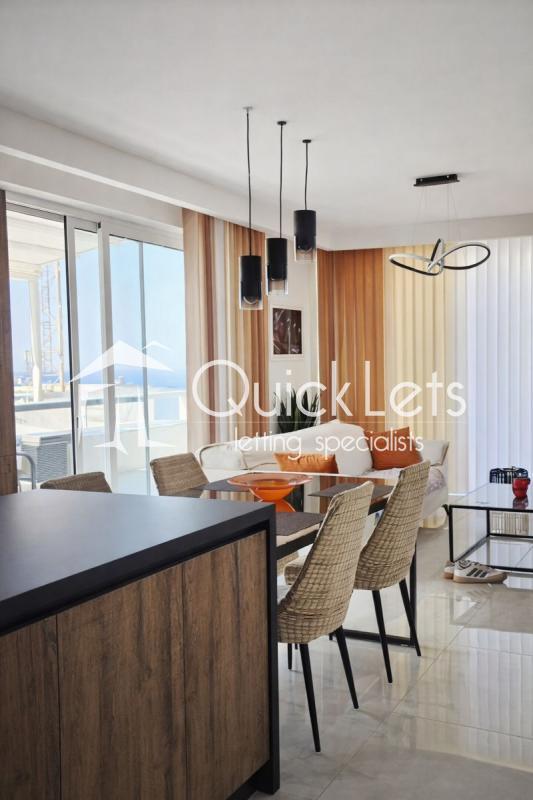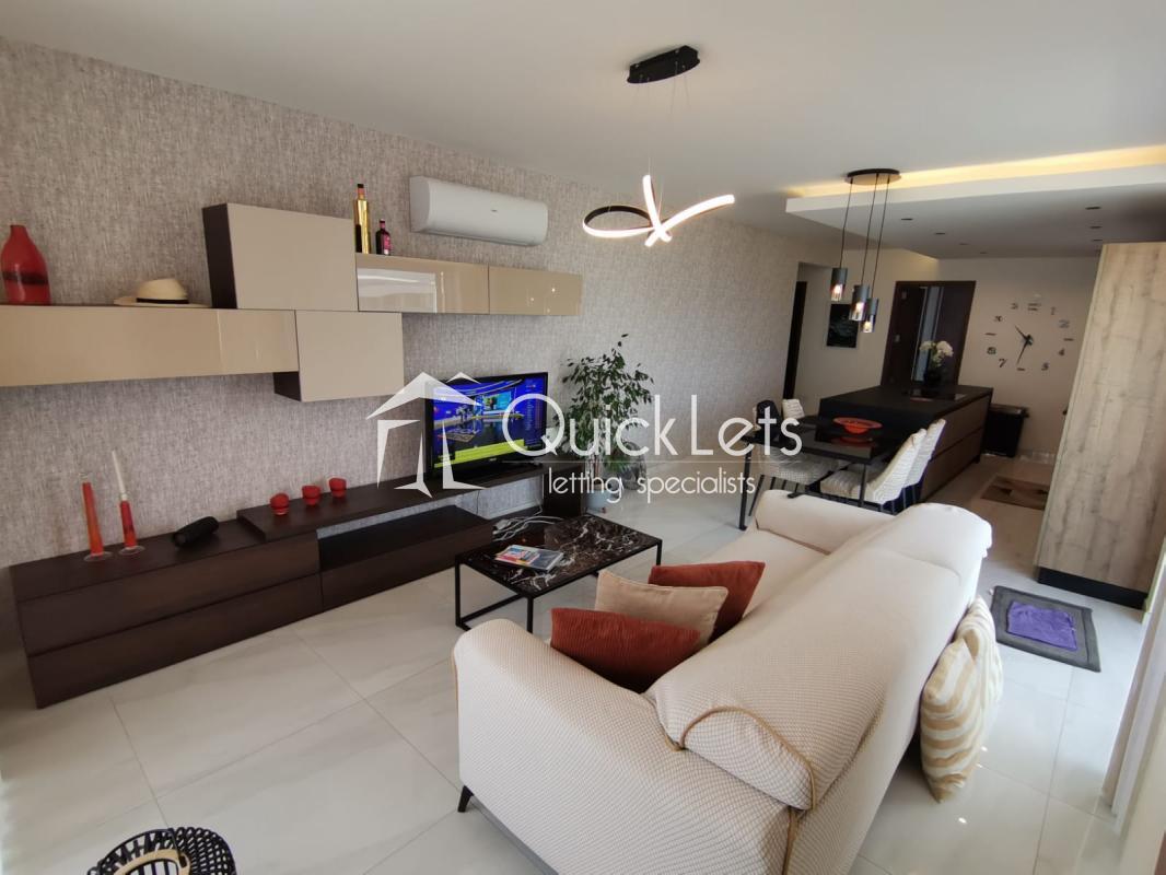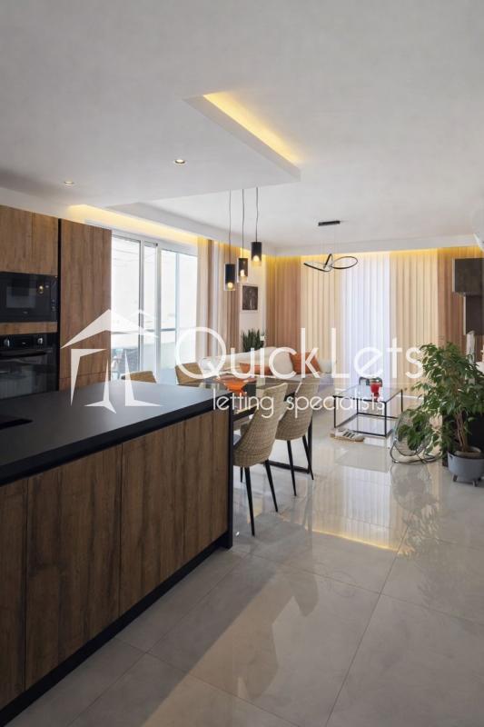 QAWRA - Ultra-modern corner penthouse located in a prime location, on the seventh floor. This exceptional ultra-modern penthouse offers a refined lifestyle defined by space, light, and elegance. The penthouse features two spacious bedrooms and two bathrooms, including a master bedroom with an en-suite. At its heart lies a stylish open-plan kitchen, living, and dining area, fully equipped with modern appliances. This living space opens directly onto a remarkably large terrace, which can also be accessed from the main bedroom.