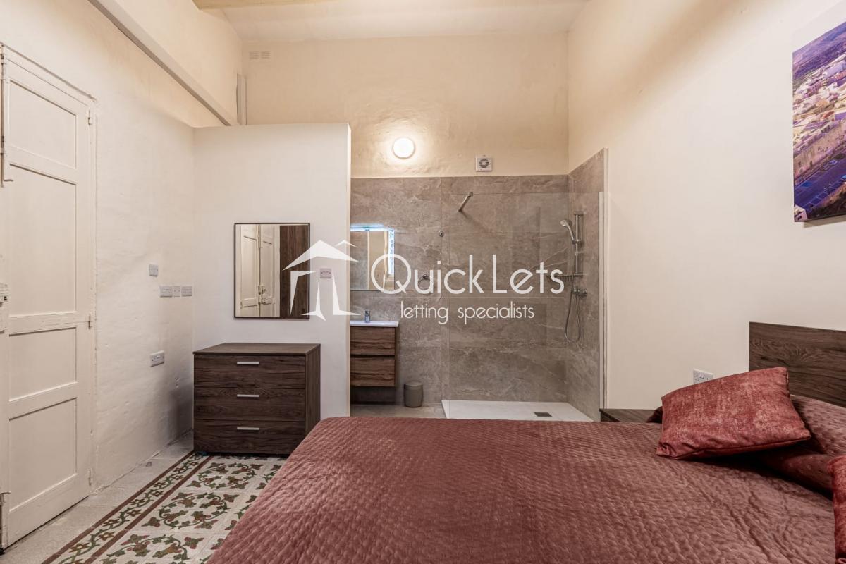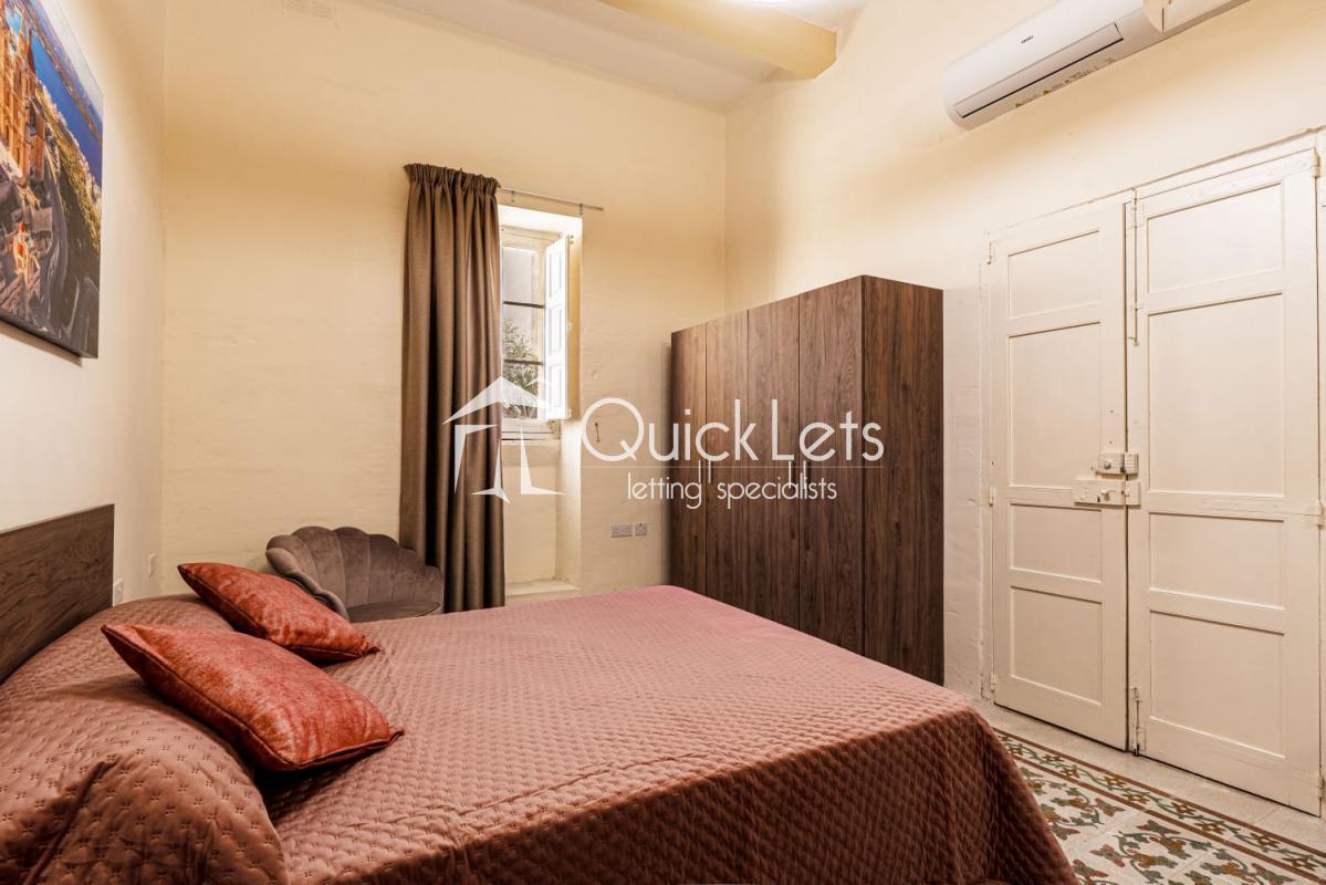 The townhouse is modernly furnished and equipped with air-conditioning in all bedrooms and the living area. It retains many unique original features, including high ceilings, exposed beams, thick stone walls, a beautiful half-round staircase with wide steps, rubble walls, and a large outdoor well. Many rooms also feature original wall niches, once used for storage and display, adding to the home’s historic charm.