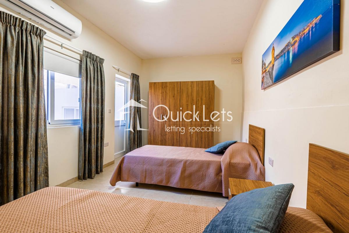 This spacious townhouse features eight bedrooms in total. On the first floor there are three bedrooms, two double bedrooms and one with twin beds along with an en-suite bathroom and a separate bathroom with a walk-in shower. The ground floor hosts the remaining five bedrooms, four with double beds and one with twin beds, as well as four bathrooms, two of which are en-suite, all equipped with walk-in showers.
