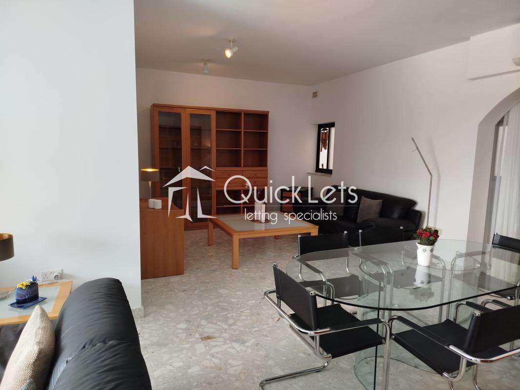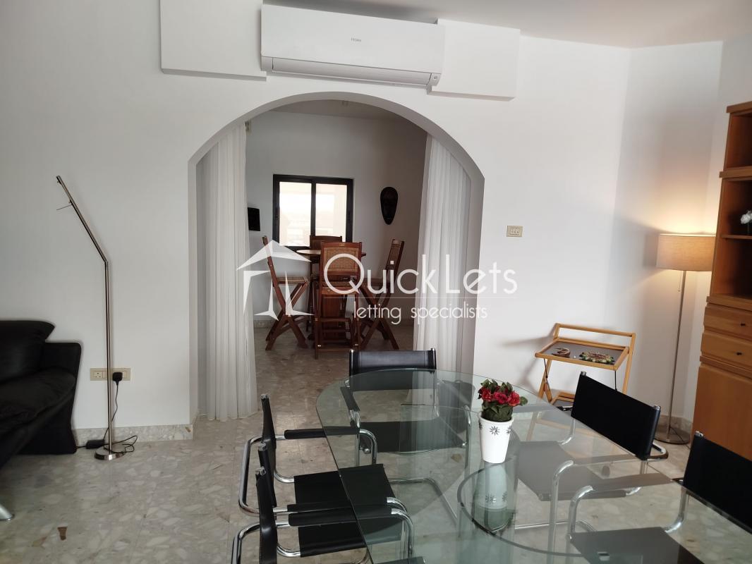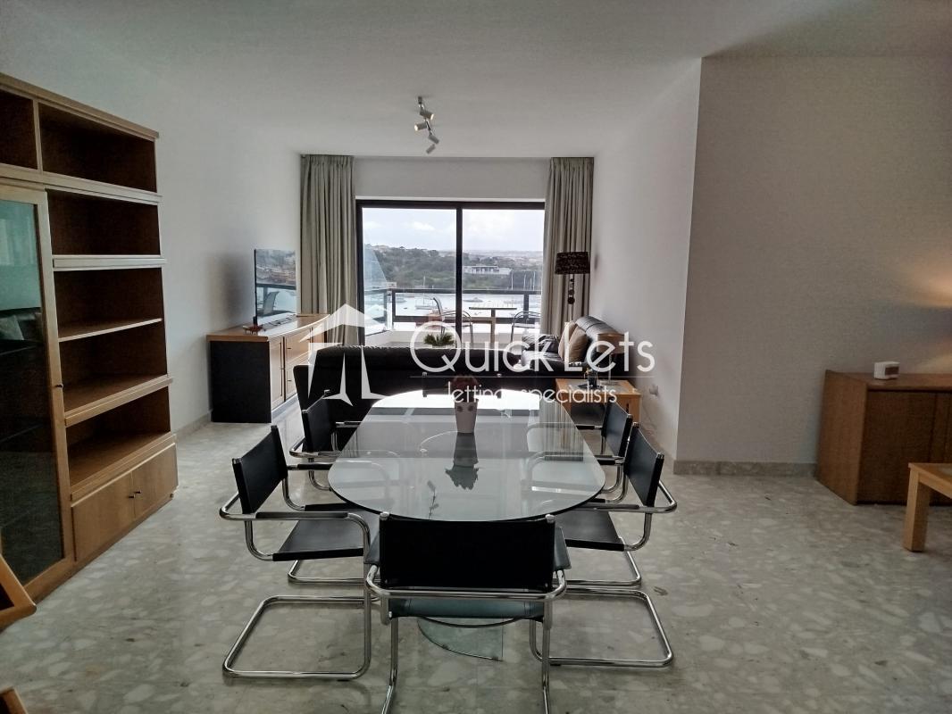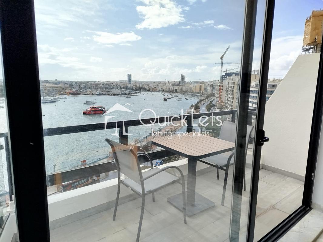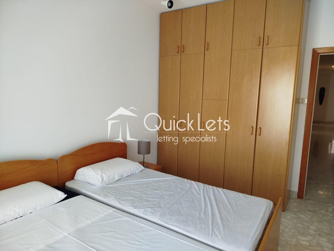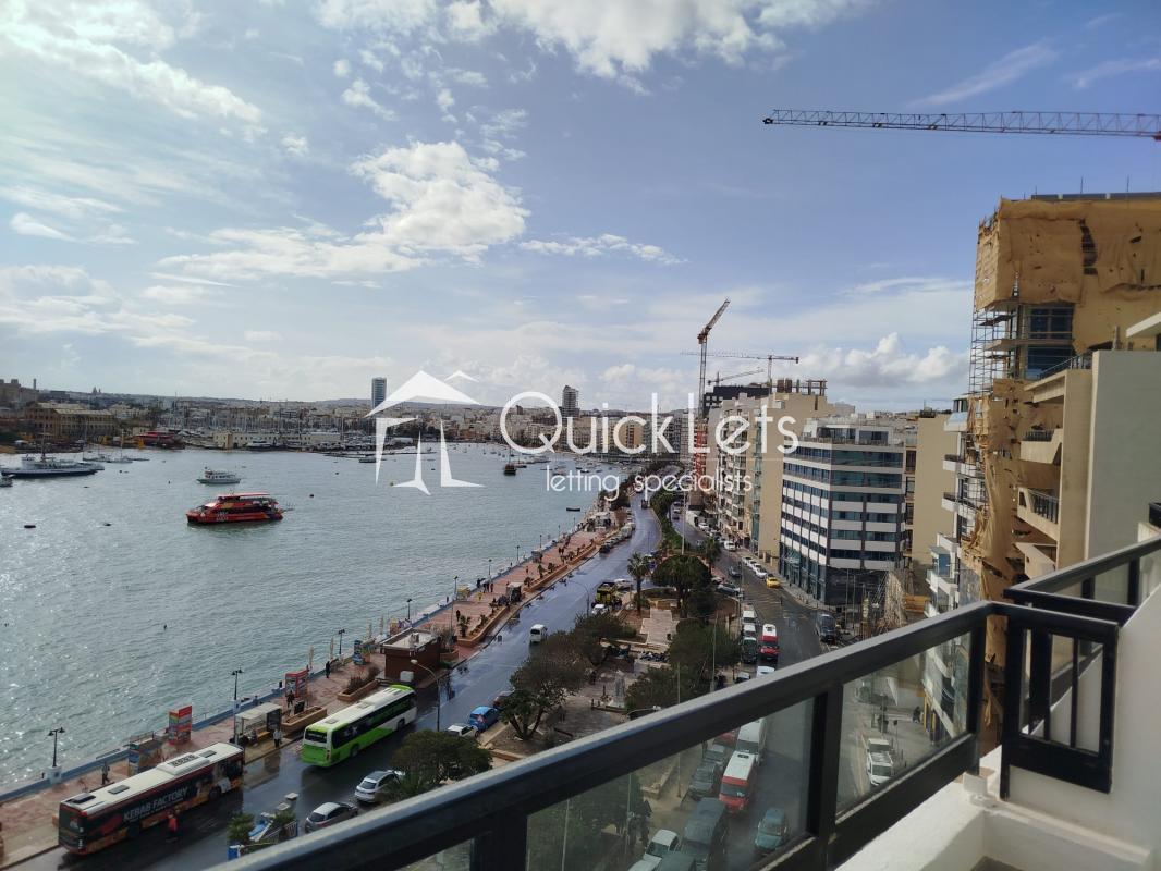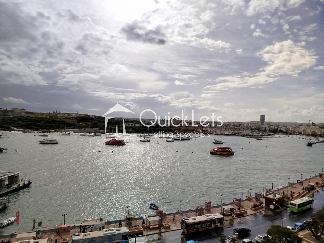 Sliema - Bright and spacious two-bedroom seafront apartment located just minutes away from the Sliema promenade and right in the heart of the Sliema Ferry area. The apartment enjoys spectacular sea views from the open-plan living and dining area, which is furnished with three leather sofas and a dining table. The property is fully furnished. There is a front balcony with sea views and two additional balconies at the back. The kitchen is separated from the living area and fully equipped, including a dishwasher. The main bedroom features an ensuite bathroom with a corner bathtub. The main bathroom includes both a bathtub and a walk-in shower. The second bedroom is furnished with two single beds. Additional features include a utility room, washing machine, a tumble dryer, air conditioning, LCD Tv and utilities included. Ideally located close to all amenities, including restaurants, cafes, shops, and excellent bus links.