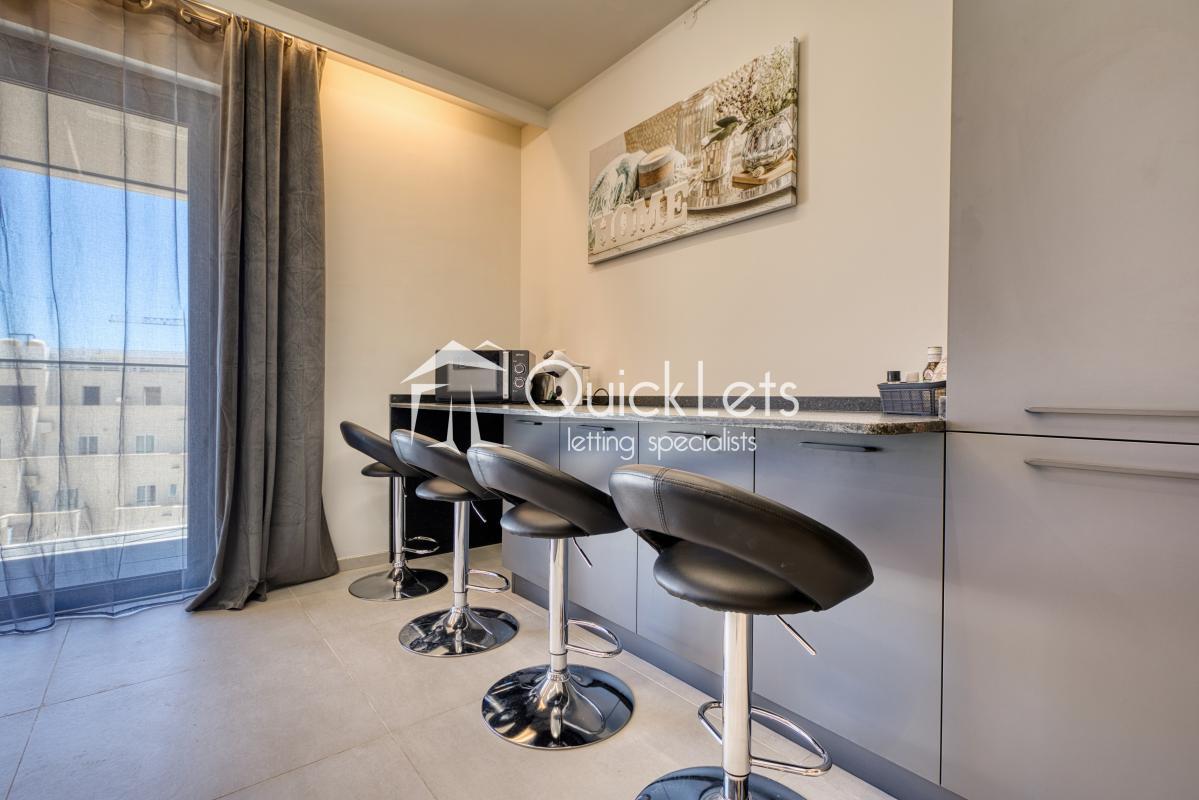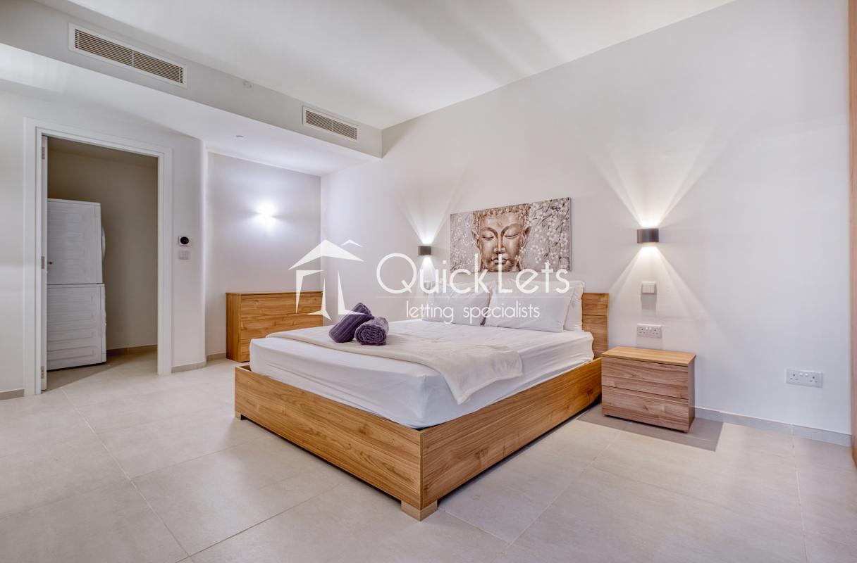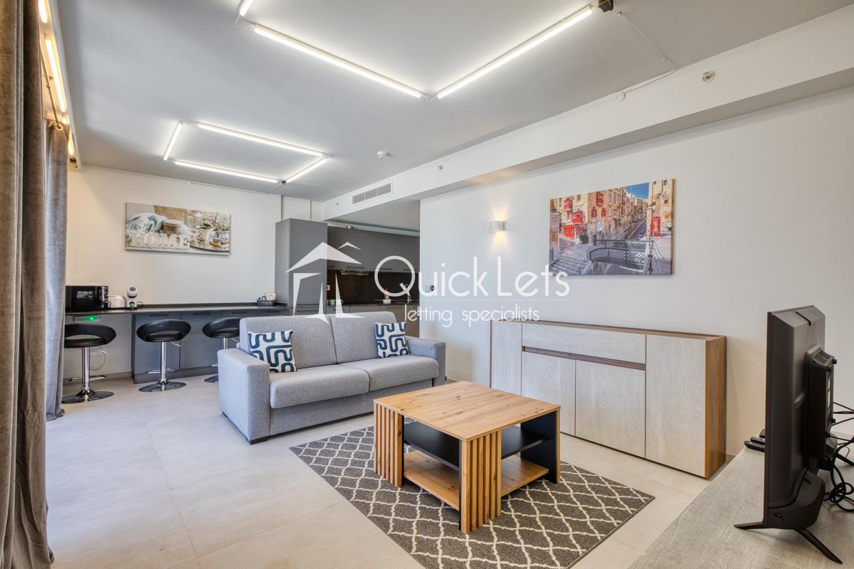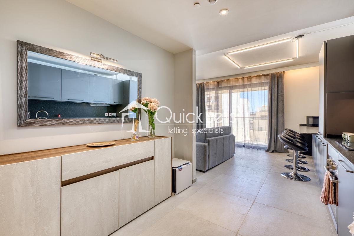 ST JULIANS : Nestled within the Mercury Suites Complex this luxury apartment is fully equipped for contempory living. Served by elevator and a seperate reception the complex offers full services from daily trash collection, reception services, membership access to the roof pool top, a stunning shopping complex and a public car park. The apartment is a large one bedroom apartment with a 12 meter long balcony. The apartment is a client favorite spread over 75 square meters the aparment is fully equipped with all modern facilities to make your accomodation and comfortable as possible. Excellent property for the affluent modern couple.